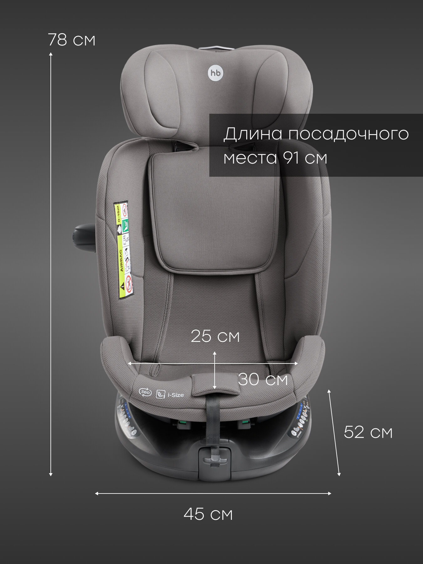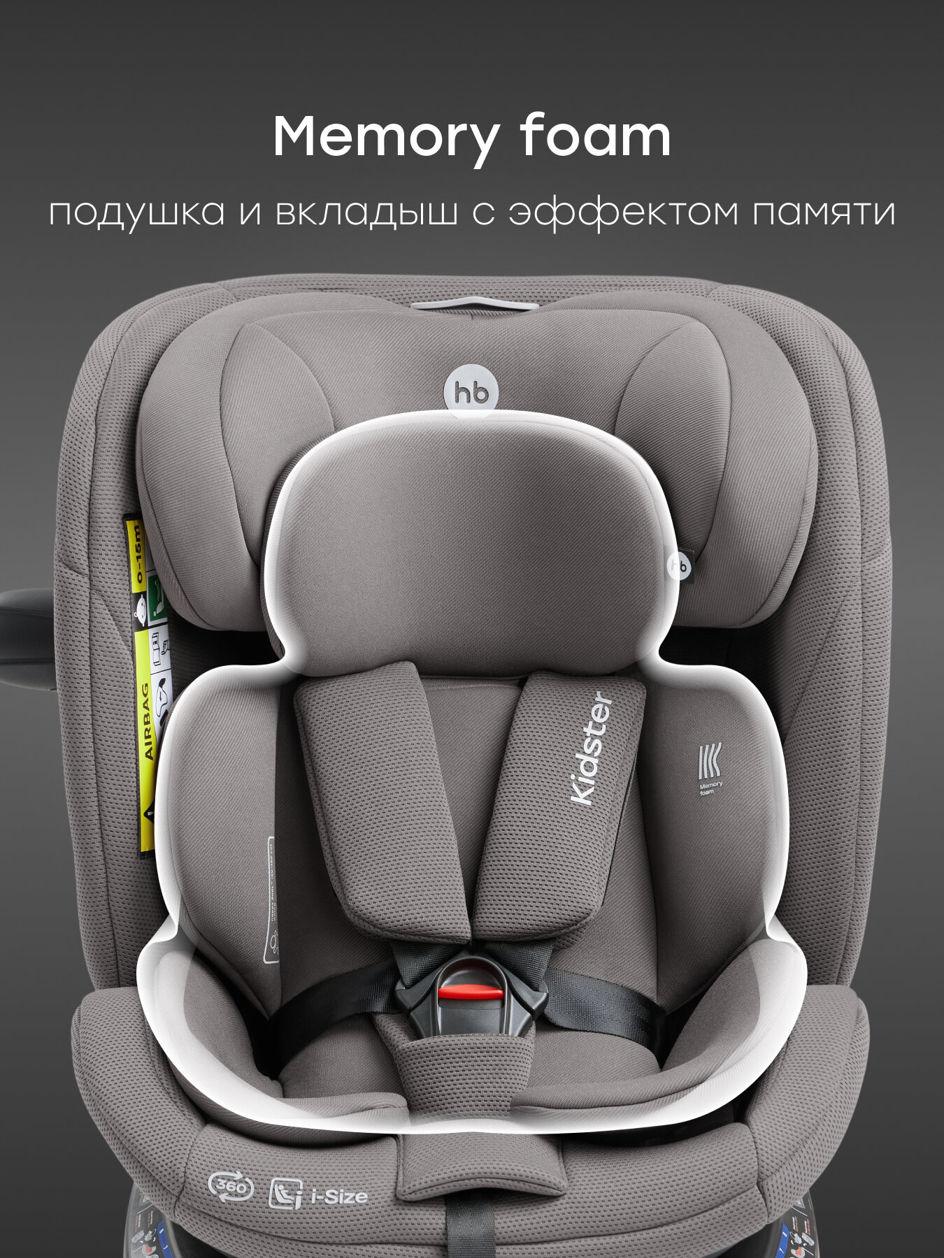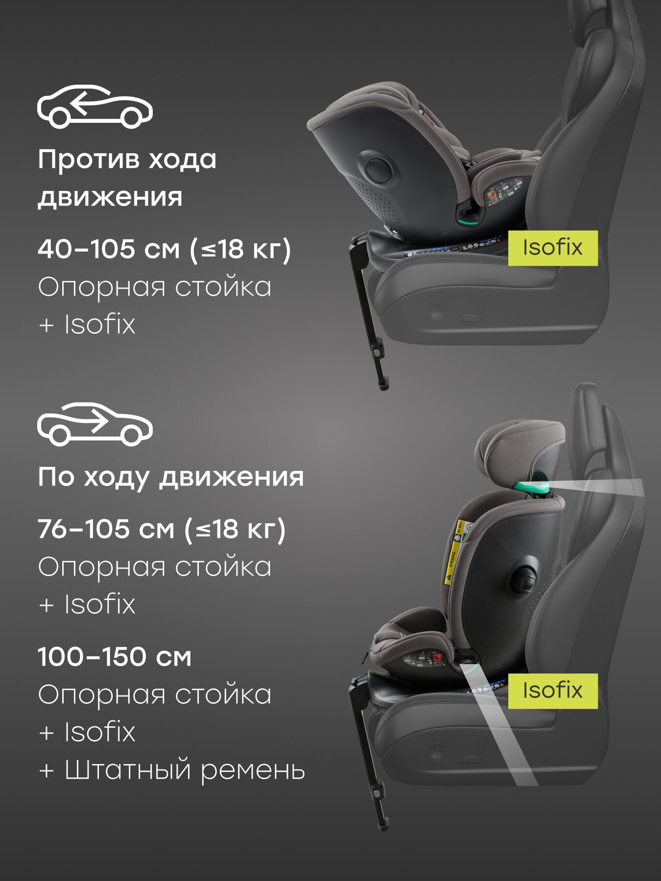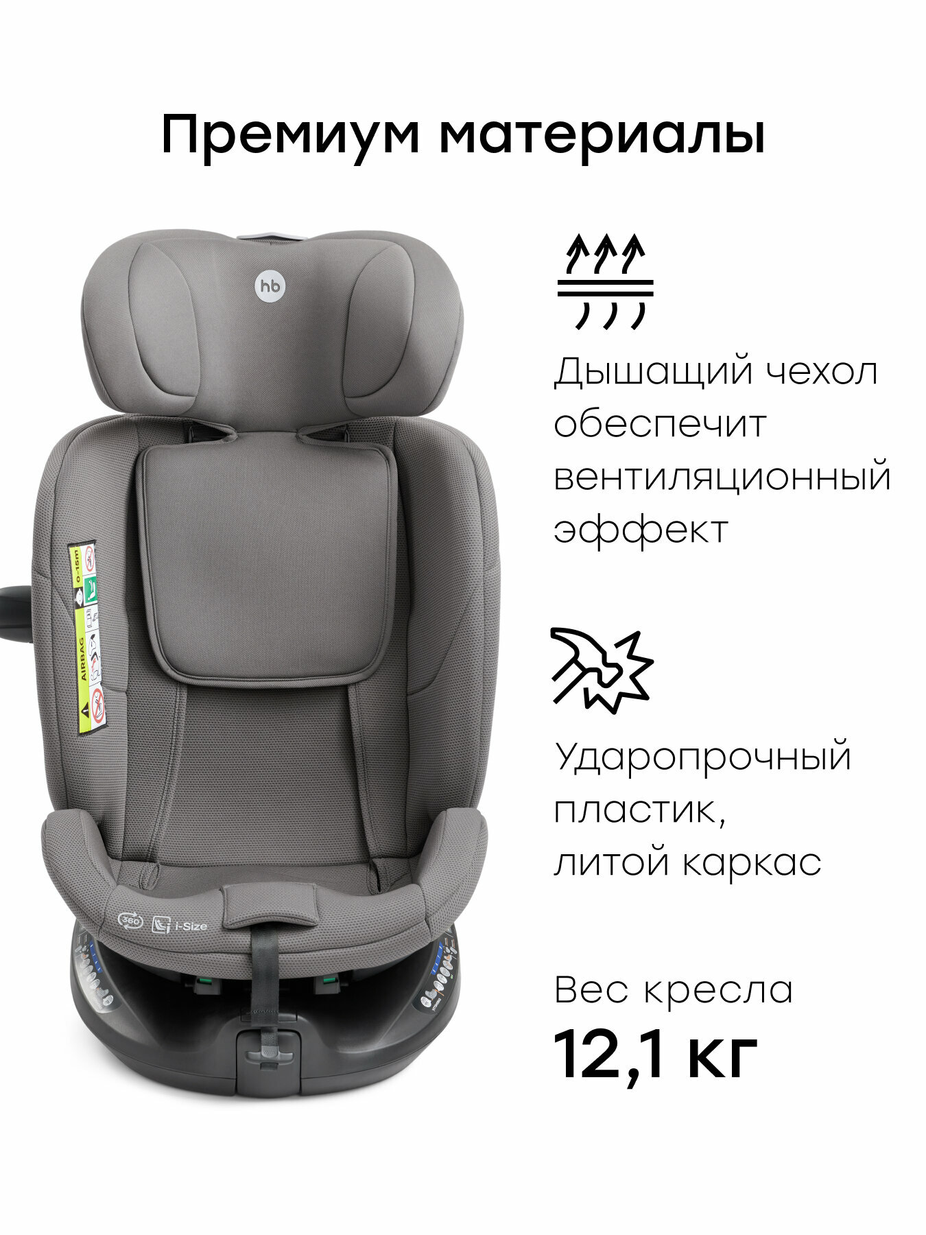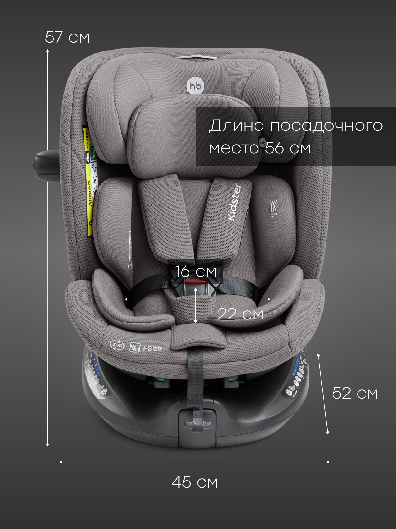 Автокресло детское поворотное на 360, Kidster Happy Baby, группа 0+/1/2/3 (до 36 кг), крепление isofix, темно-серый интересное: