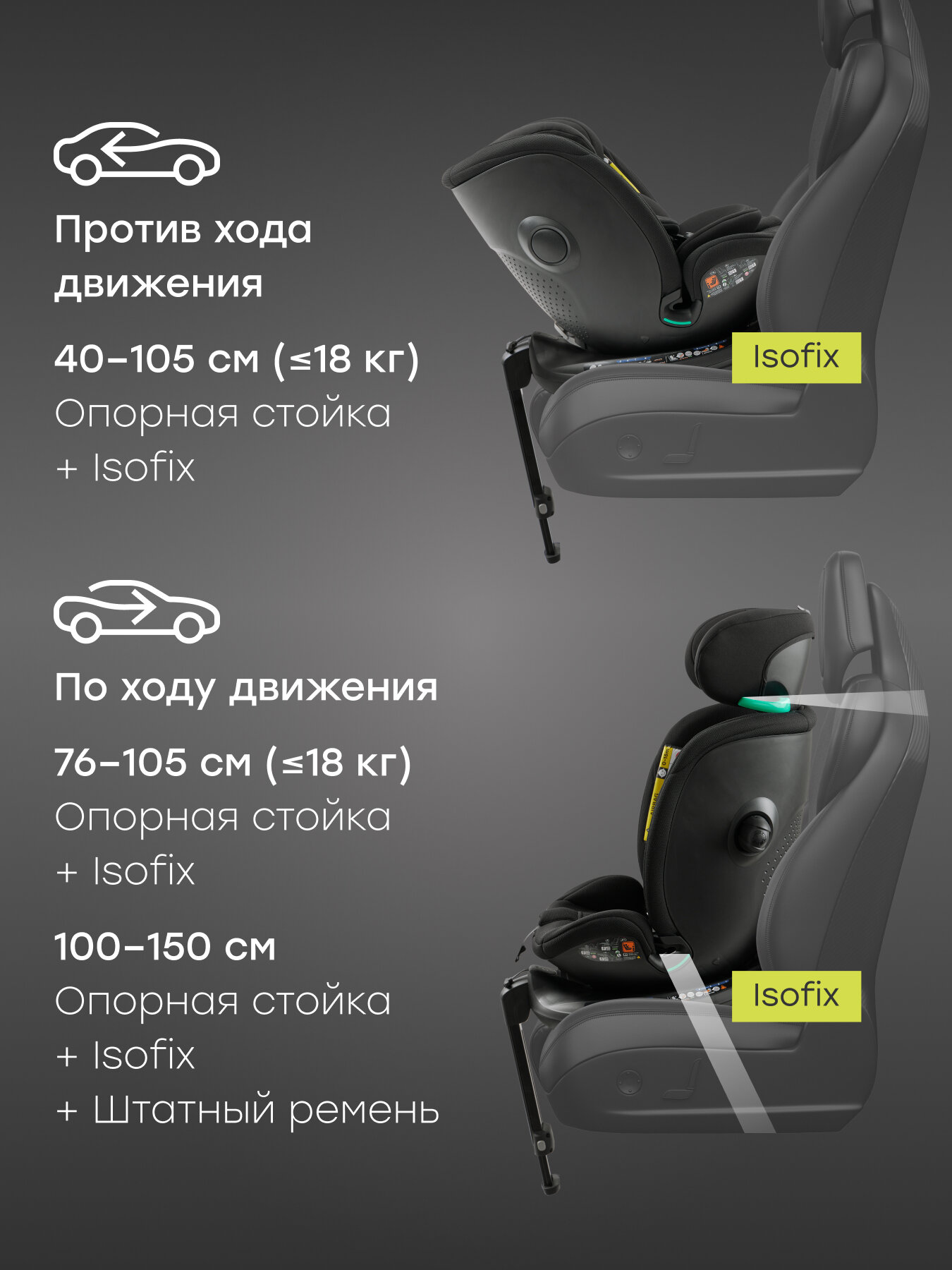 Автокресло детское поворотное на 360, Kidster Happy Baby, группа 0+/1/2/3 (до 36 кг), i-size, крепление isofix, черный интересное:
