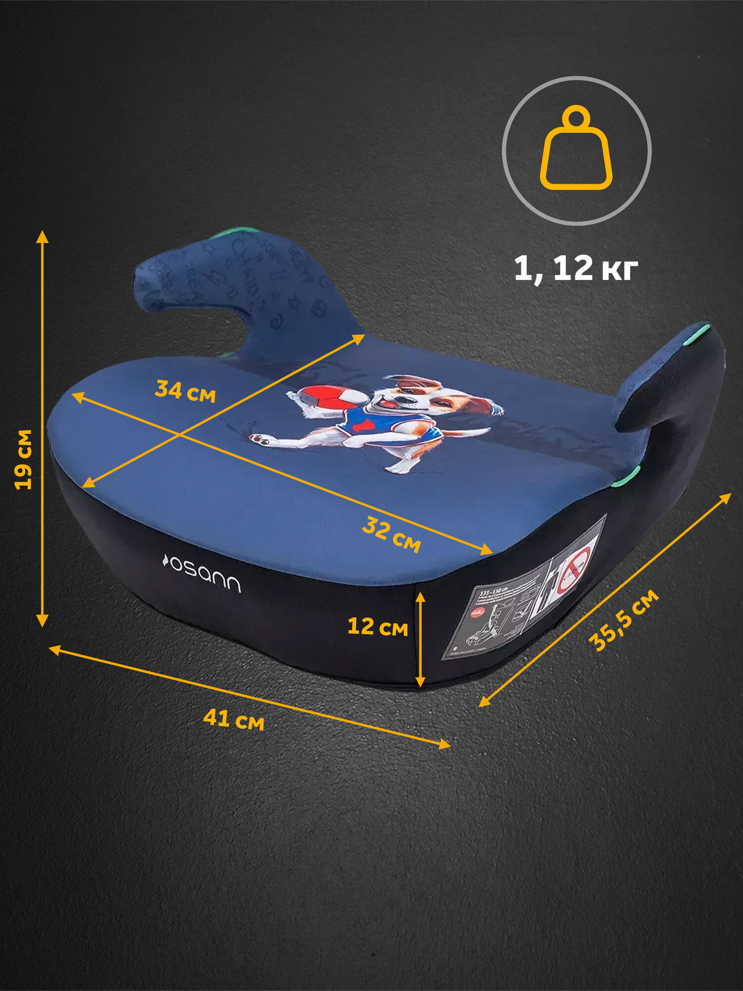 Купить Автокресло детское Osann - BMW бустер Boost Dog, группа 3, от 135 до 150 см, черно-синий со щенком
