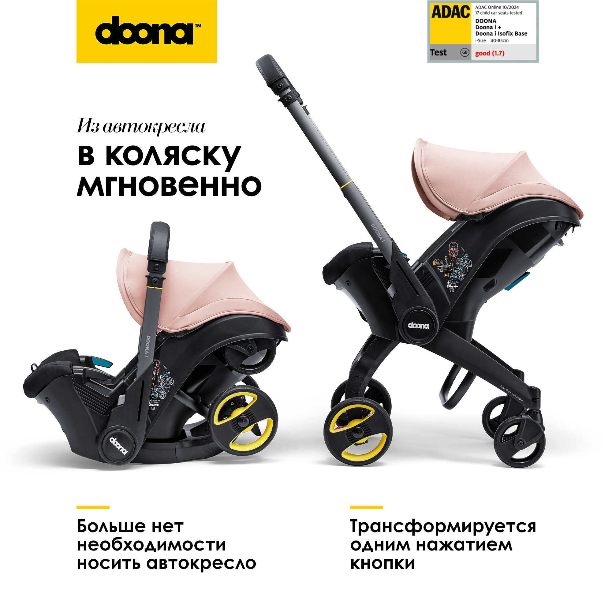 Коляска-автокресло, автолюлька для новорожденных Doona i, цвет: Blush Pink интересное: