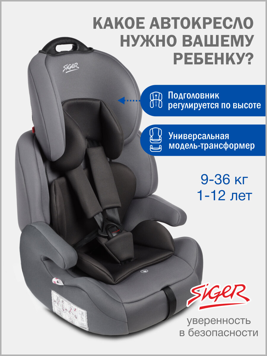 Автокресло детское Siger Стар от 9 до 36 кг, маренго интересное: