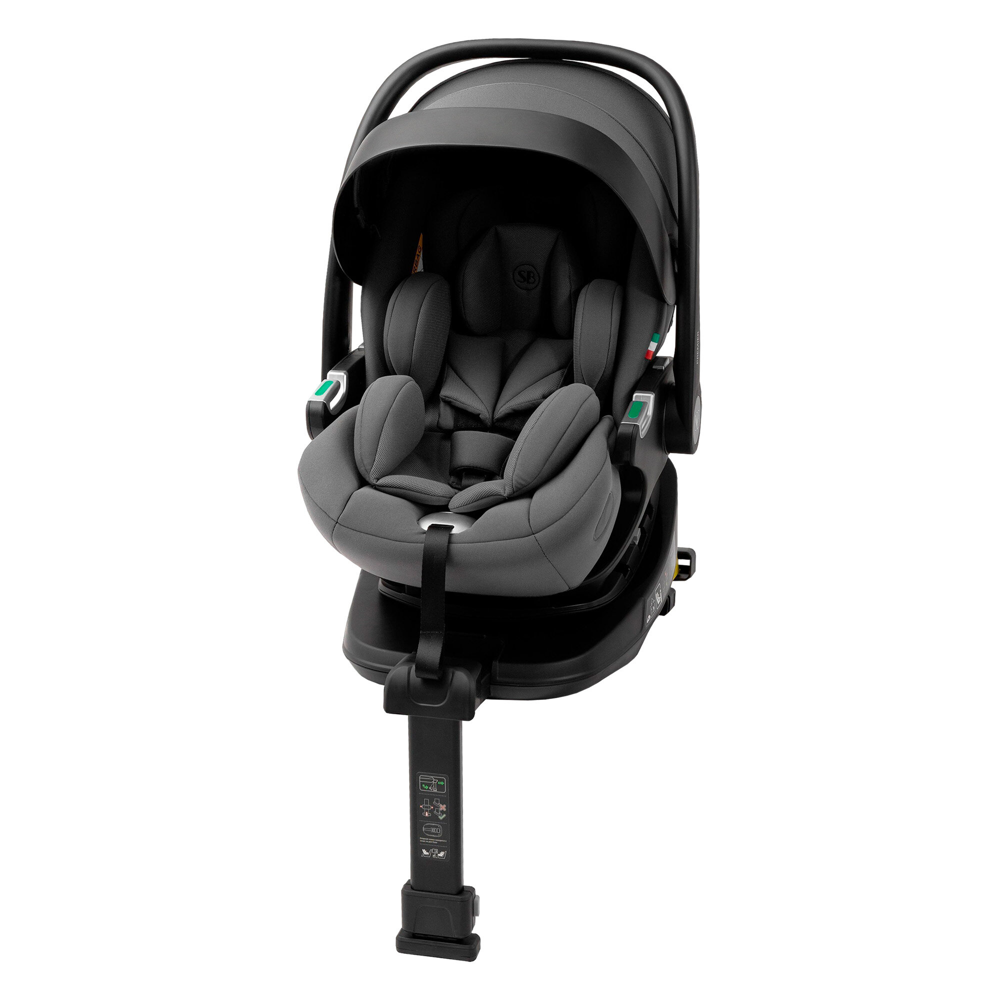 Купить Автолюлька для новорожденных 0 + Sweet Baby Premier Plus Grey с базой i-Size, раскладывающаяся