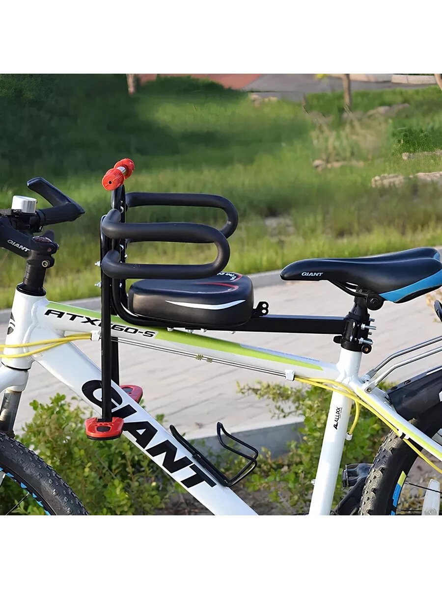 Велокресло детское переднее, с ручками для ребенка рулем, с защитными поручнями до 22кг интересное: