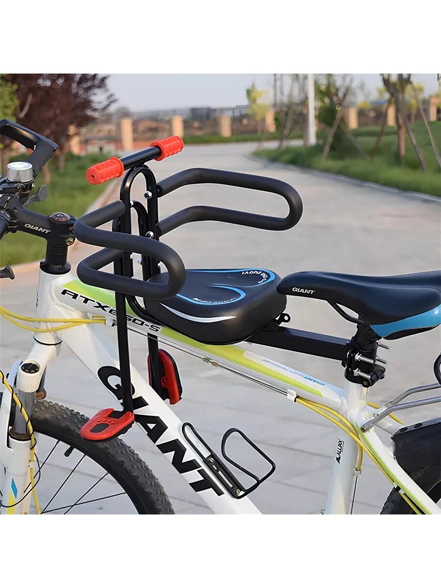 Купить Велокресло детское переднее, с ручками для ребенка рулем, с защитными поручнями до 22кг