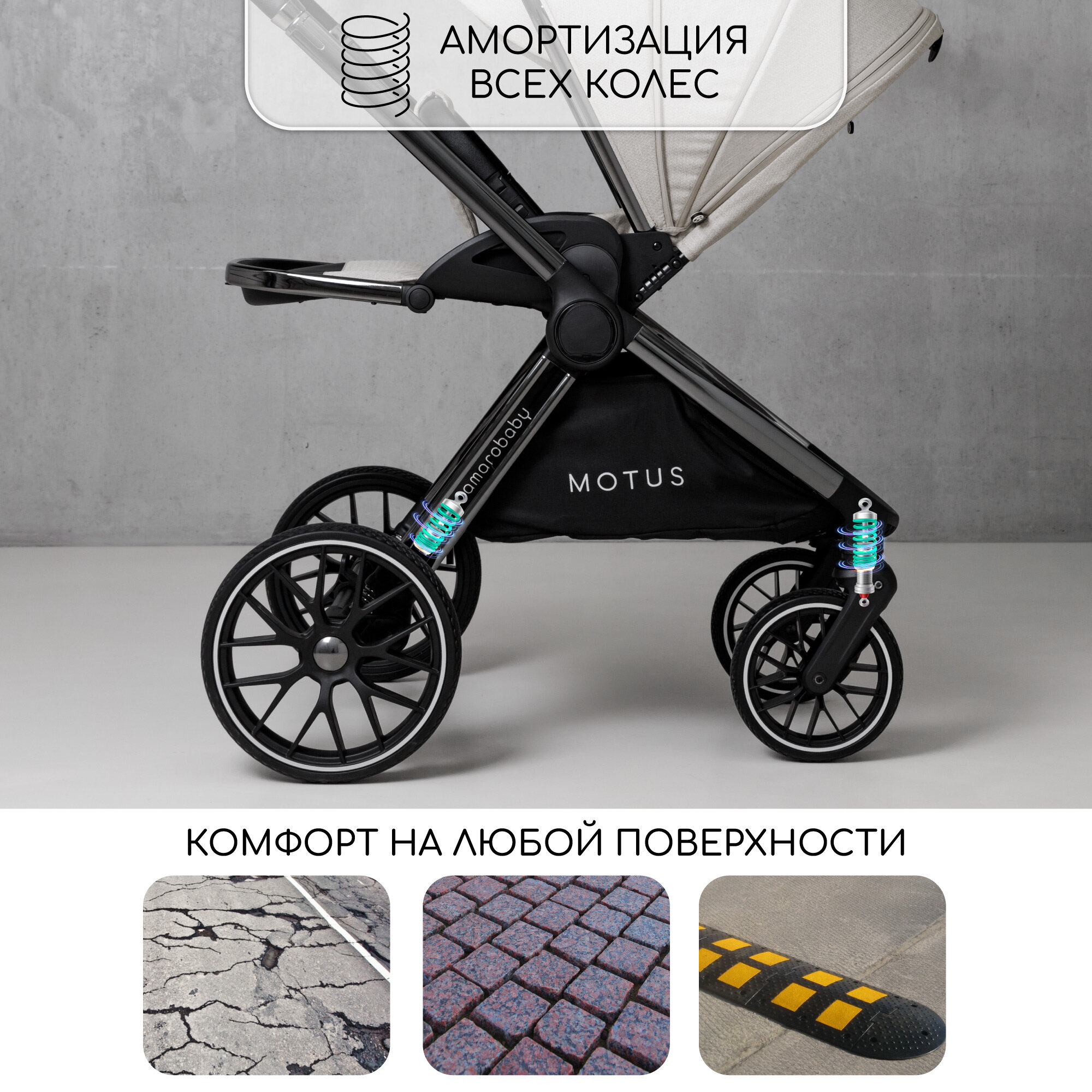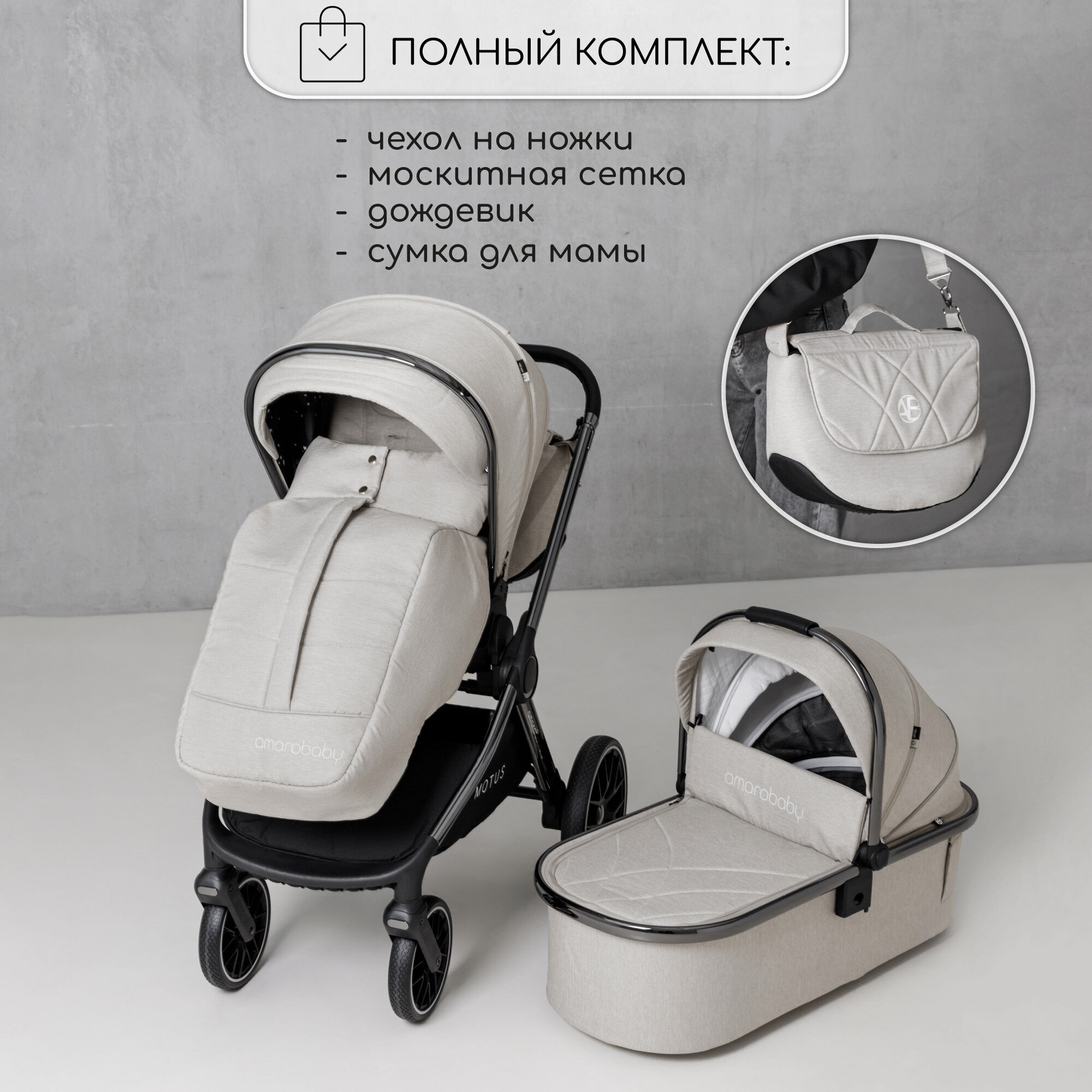 Коляска детская 2 в 1 Amarobaby Motus, белый интересное: