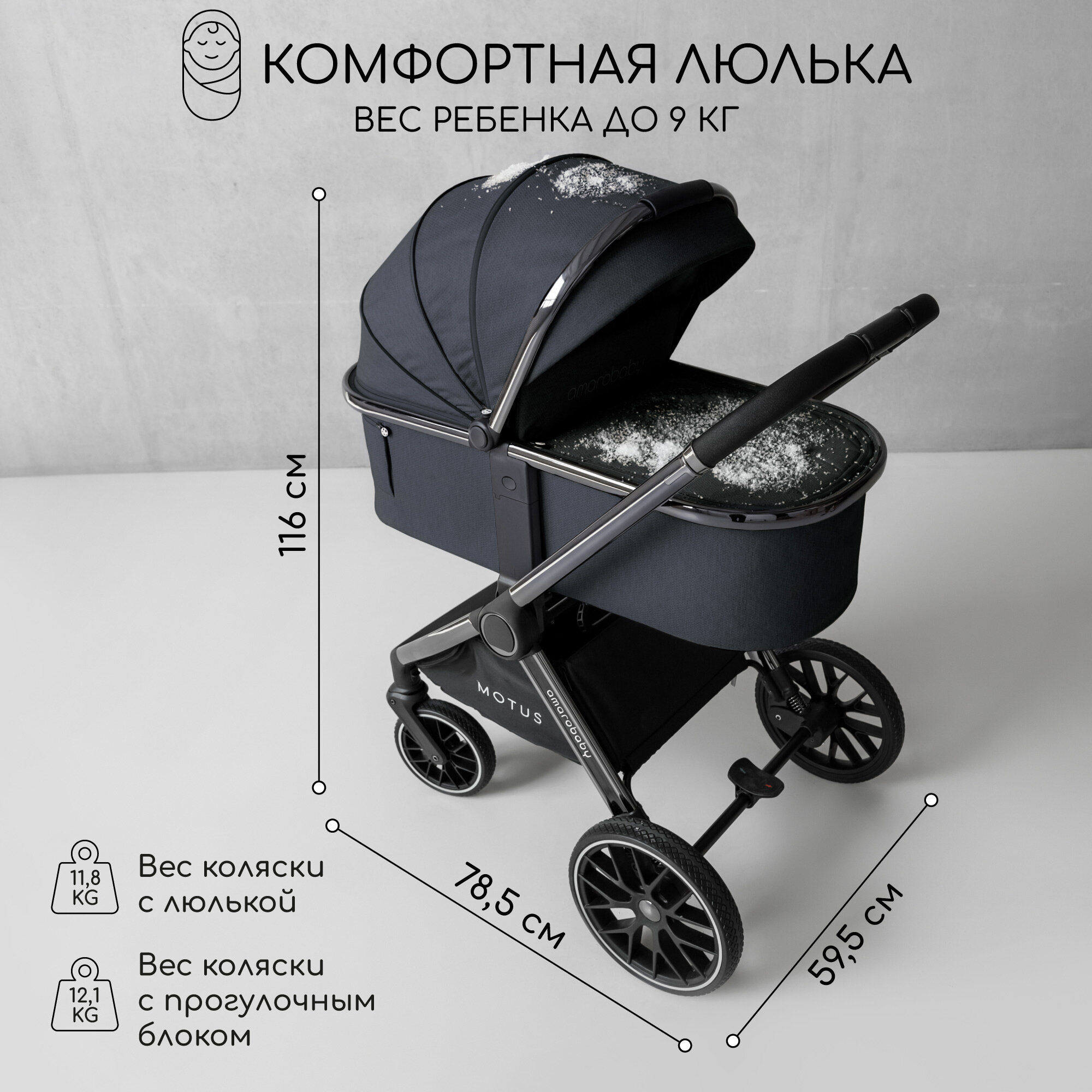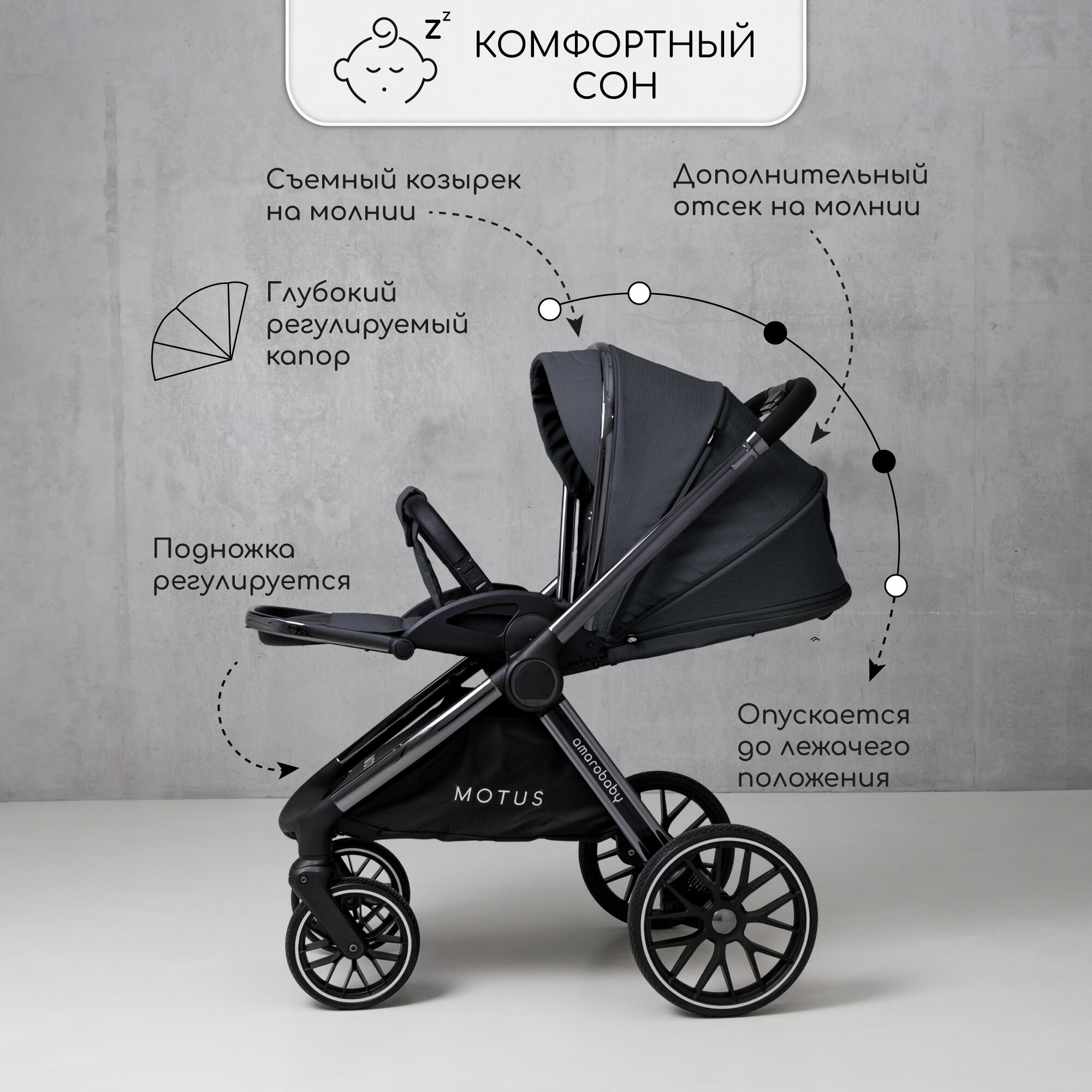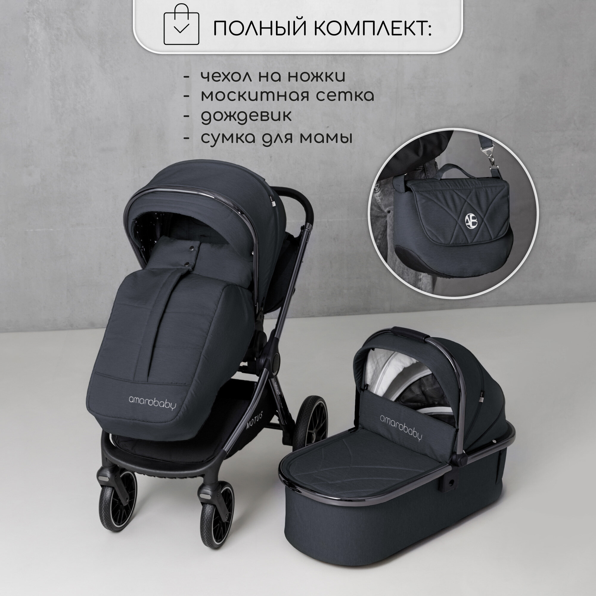 Коляска детская 2 в 1 Amarobaby Motus, серый интересное: