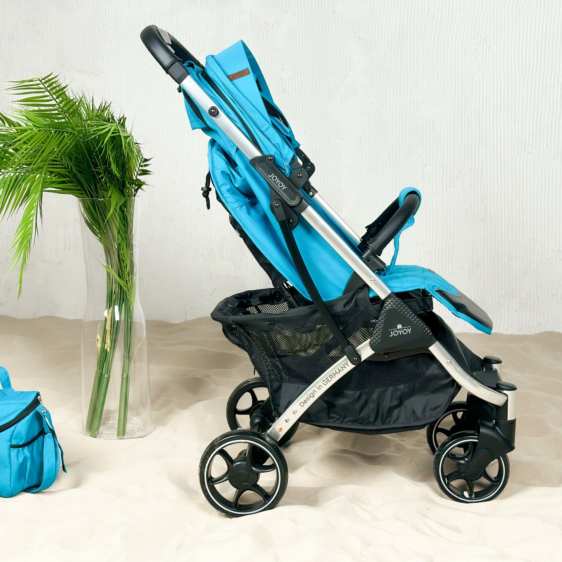 Коляска прогулочная JOYOY, синий, серая рама + сумка (механическая регулировка спинки) интересное: