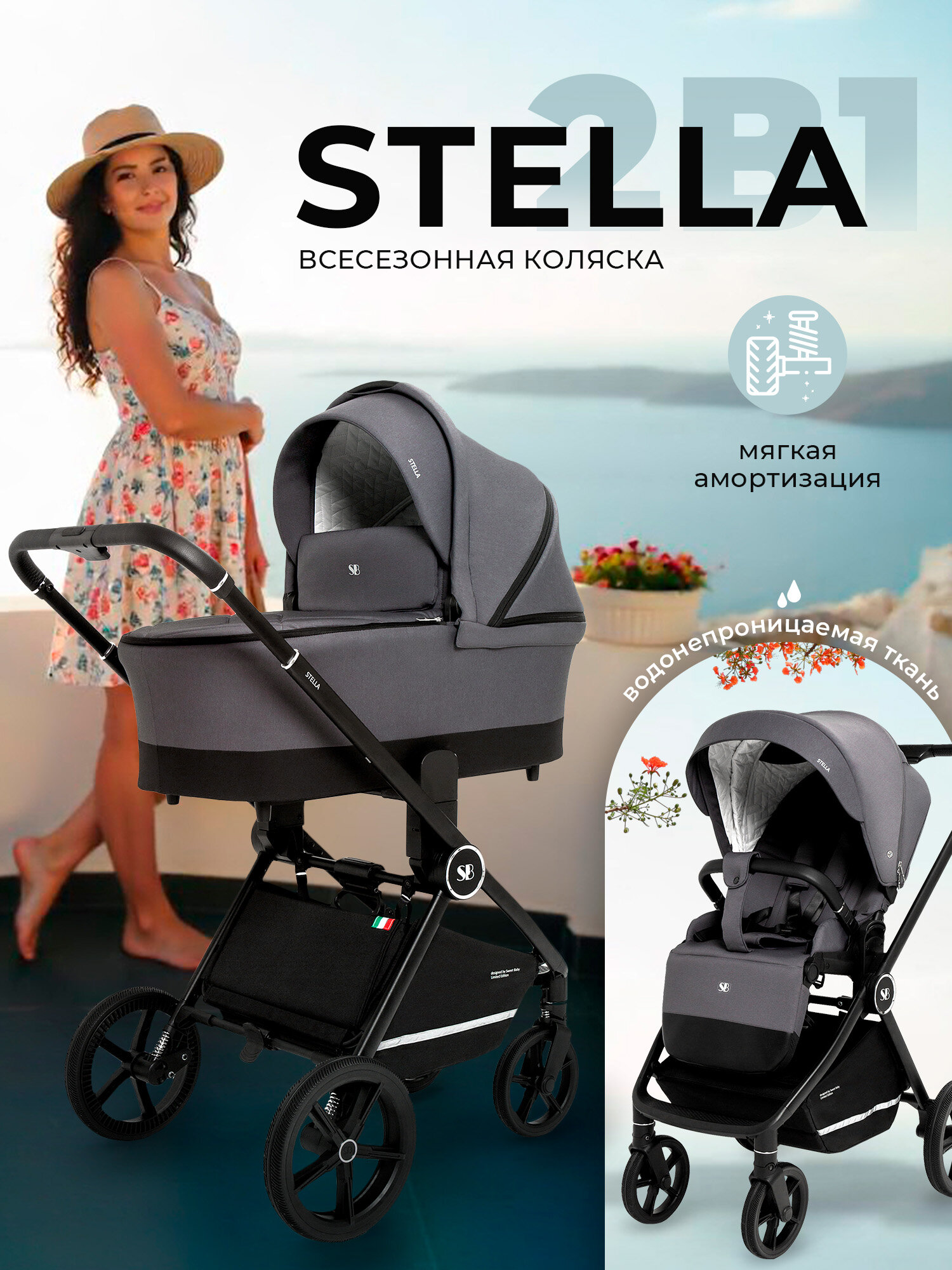 Коляска 2 в 1 для новорожденных Sweet Baby Stella Dark Grey интересное:
