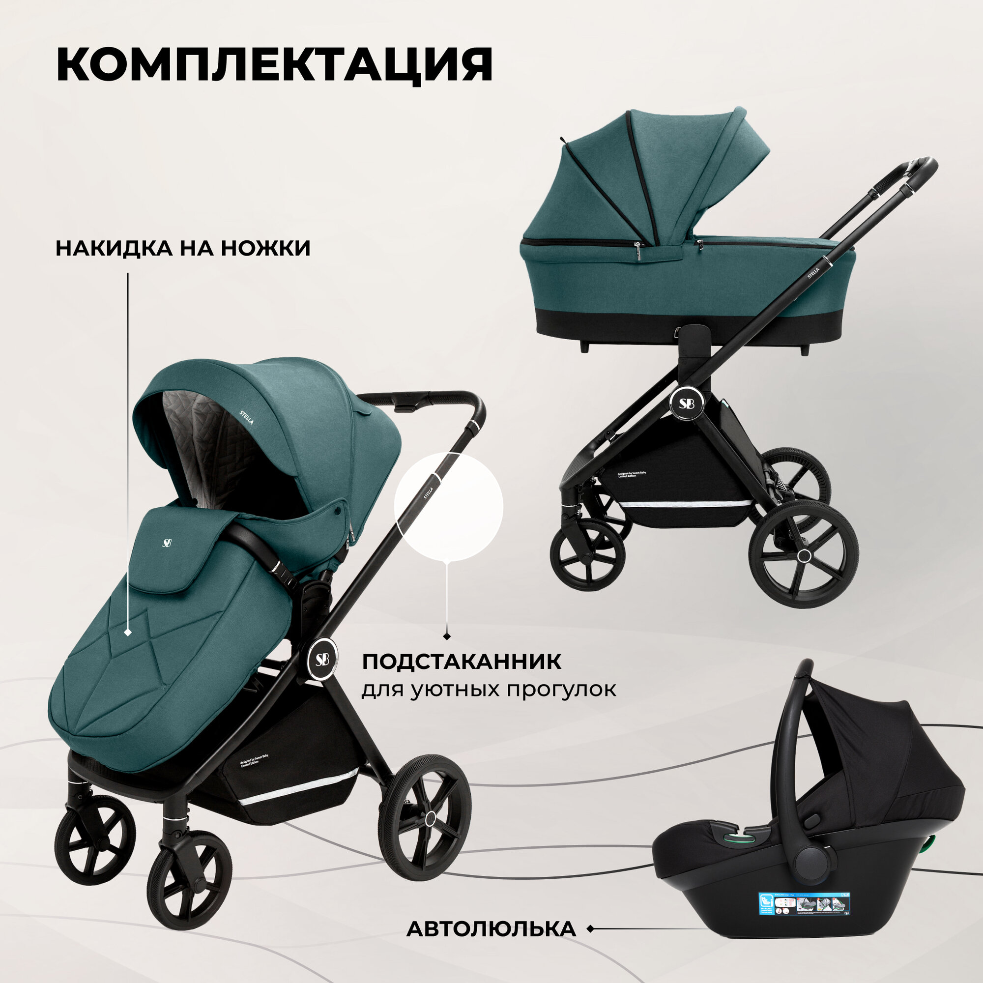 Коляска для новорожденных 3 в 1 Sweet Baby Stella Green интересное: