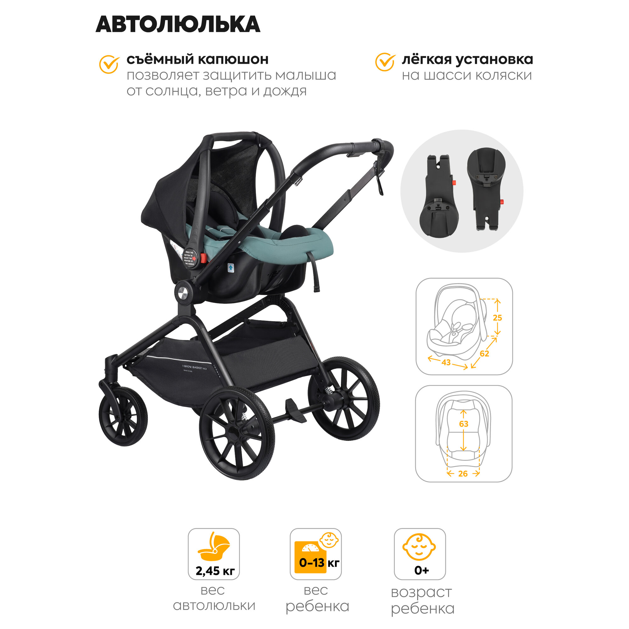 Детская универсальная коляска 3 в 1 Jovola Enigma, всесезонная с автолюлькой, реверсивный блок, зеленый интересное: