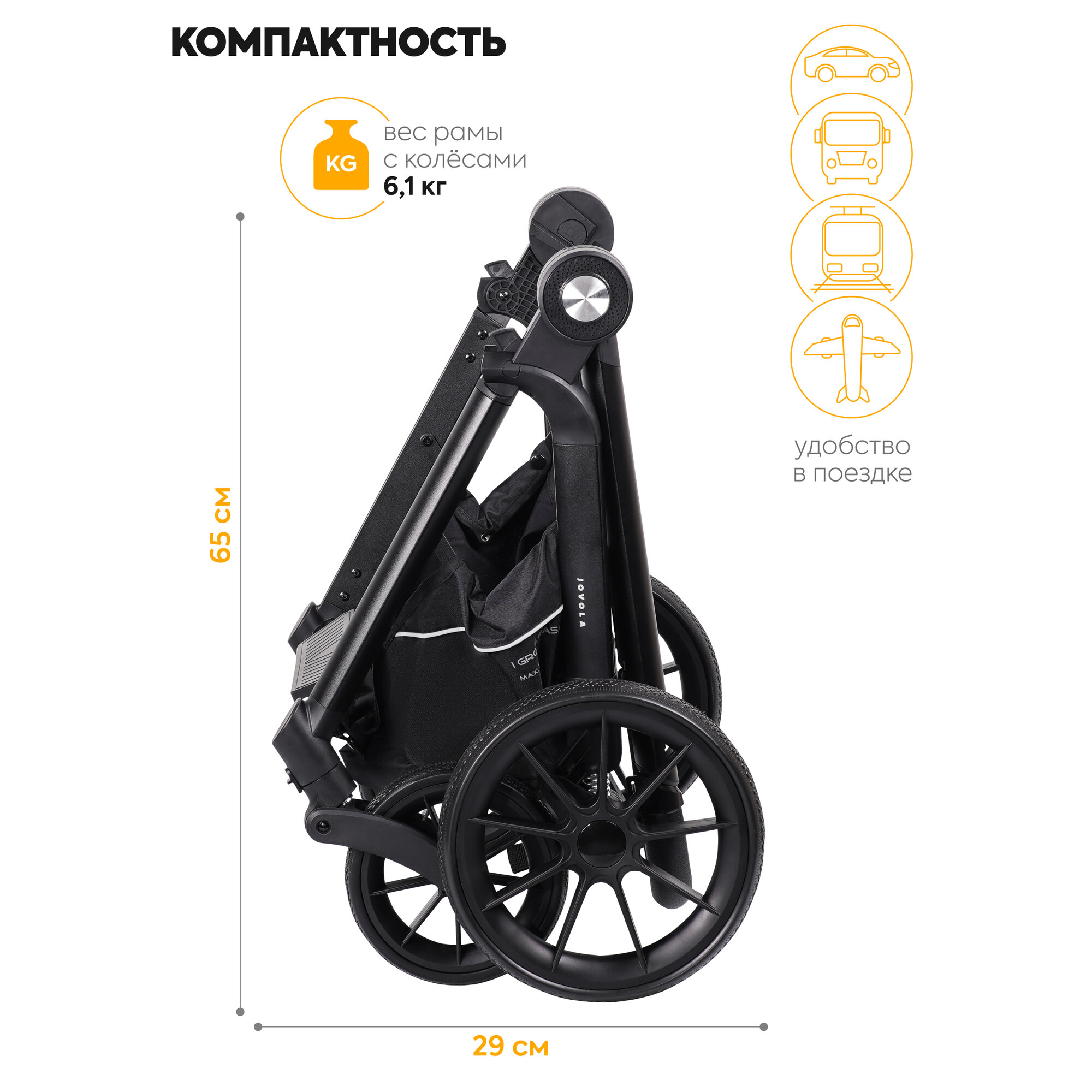 Детская универсальная коляска 3 в 1 Jovola Enigma, всесезонная с автолюлькой, реверсивный блок, черный