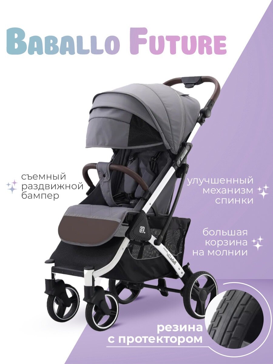 Коляска прогулочная Baballo future 2024, цвет серый на белой раме интересное:
