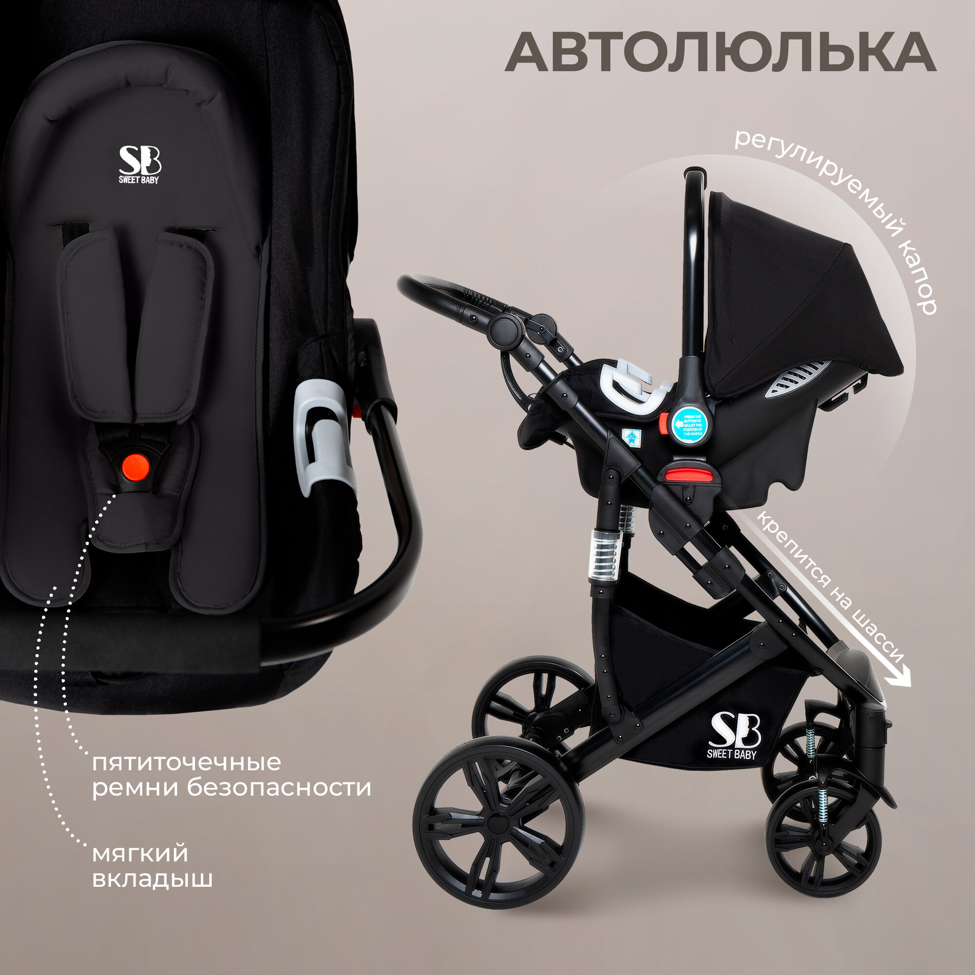 Коляска-трансформер 3в1 Sweet Baby Comfort Black Black интересное: