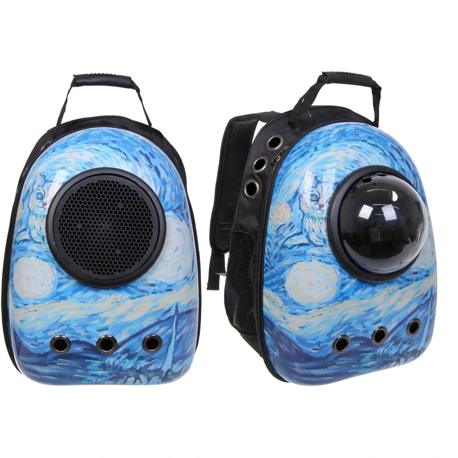 Рюкзак - переноска для животных «любимый БРО», цвет Люблю Ван Гога, 27*33*43см/до 7кг (сетка, иллюминатор, подложка) (Пакет и Лейбл) интересное: