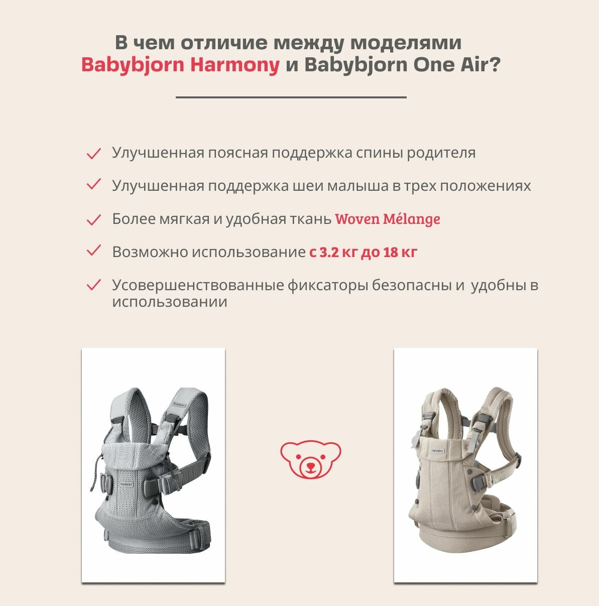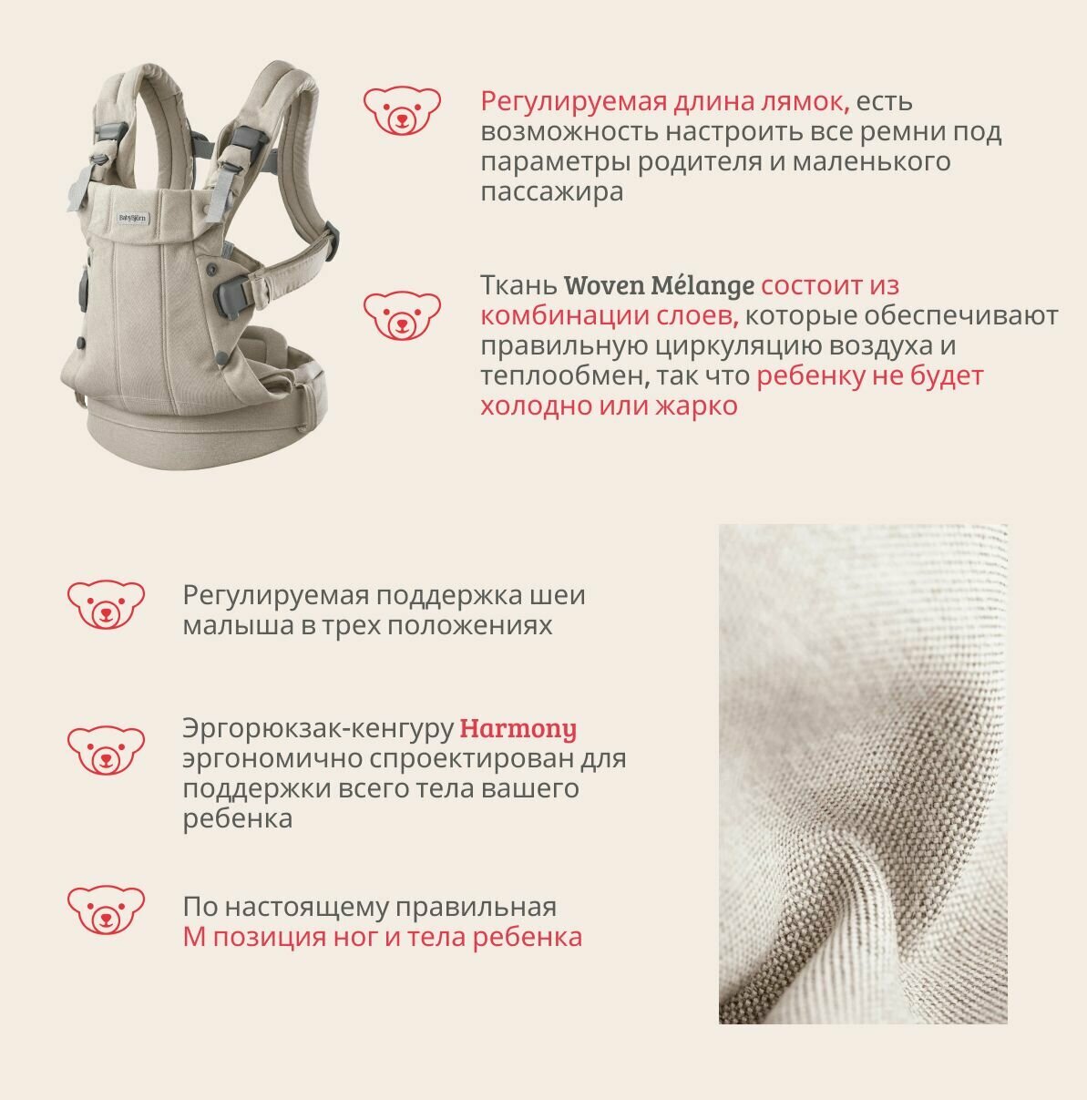 Эргорюкзак - кенгуру BabyBjorn Baby Carrier Harmony Woven цвет Light Beige интересное: