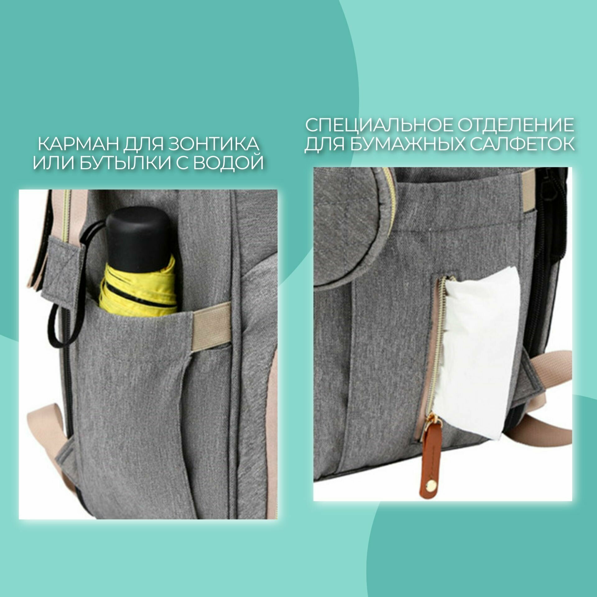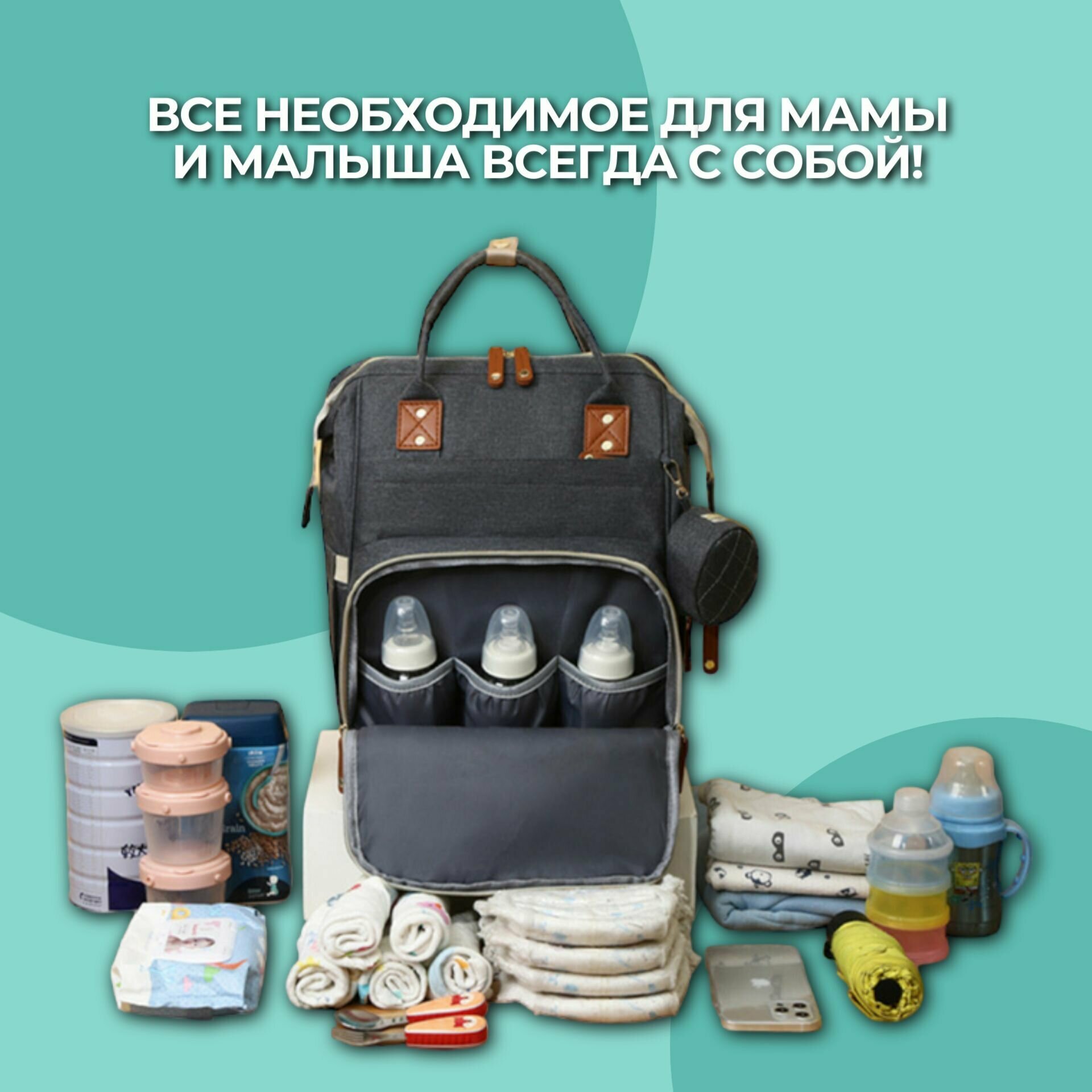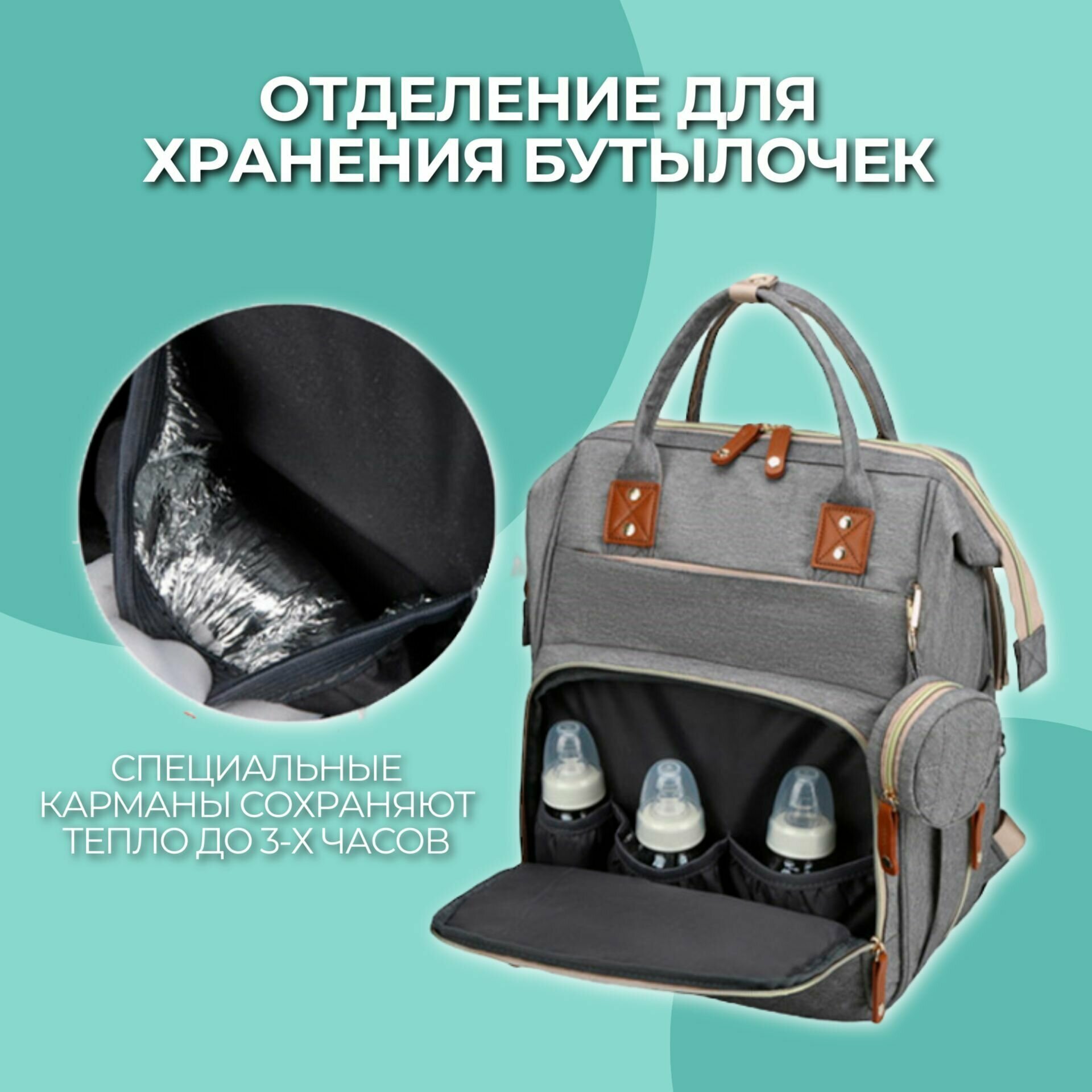 Рюкзак для мамы и малыша с термокарманом универсальный женский / Сумка на коляску для прогулок, темно-серый интересное: