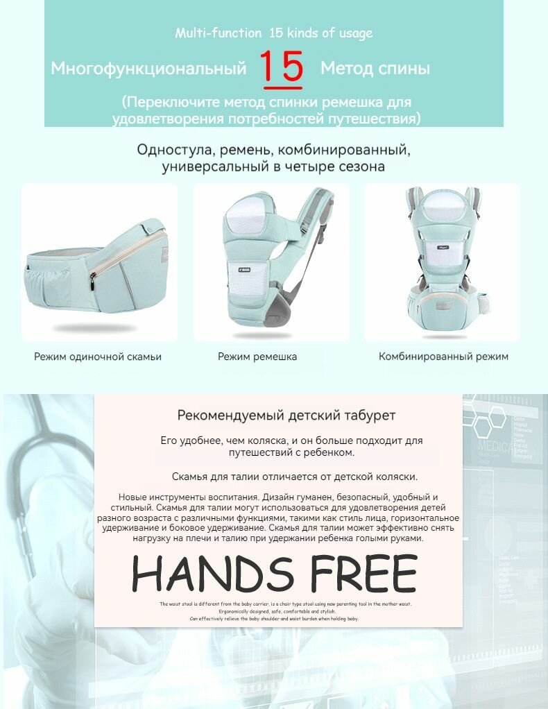 Кенгуру переноска для новорожденных 4 B1, переноска для малышей, Светло-зеленый интересное: