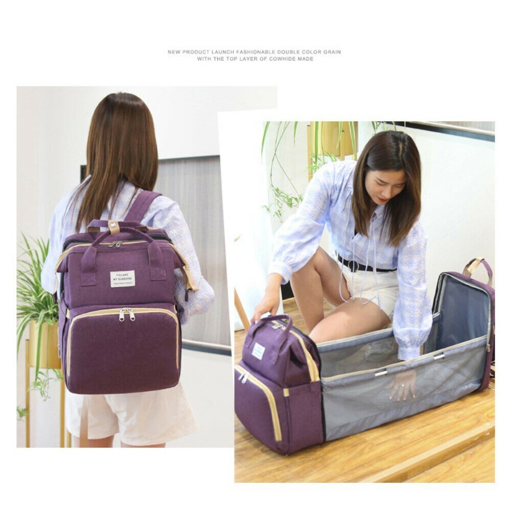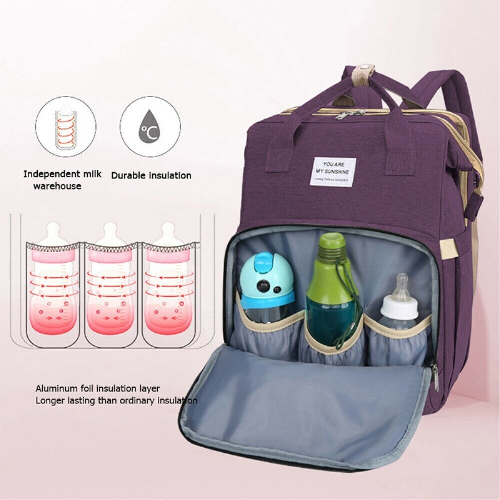 Водонепроницаемая многофункциональная сумка для мамы - складная детская кроватка - рюкзак - фиолетовая интересное: