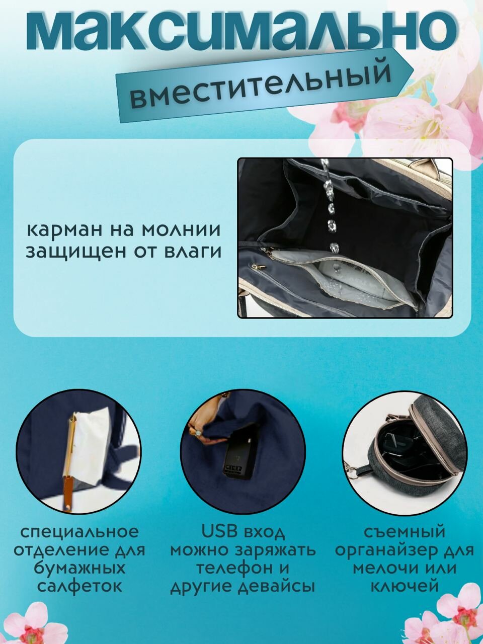 СохранитьЖенский универсальный городской рюкзак для мамы / Дорожная сумка + аксессуар для мелочей синий интересное: