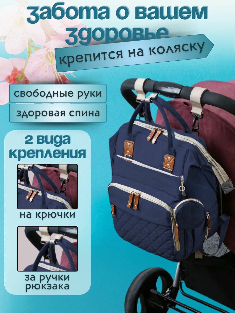 Купить Женский универсальный городской рюкзак для мамы / Дорожная сумка + аксессуар для мелочей синий