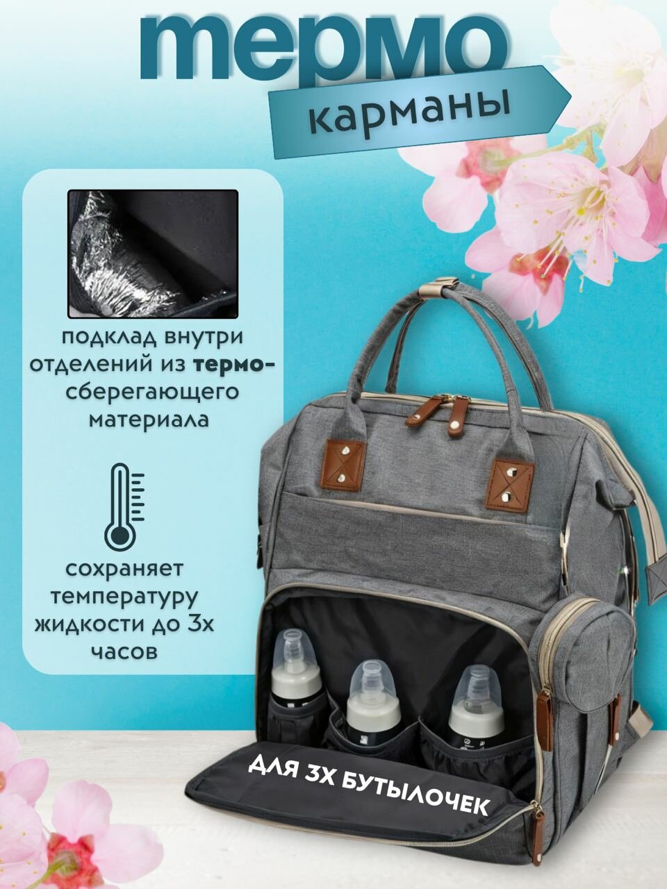 Купить Женский универсальный городской рюкзак для мамы / Дорожная сумка + аксессуар для мелочей серый
