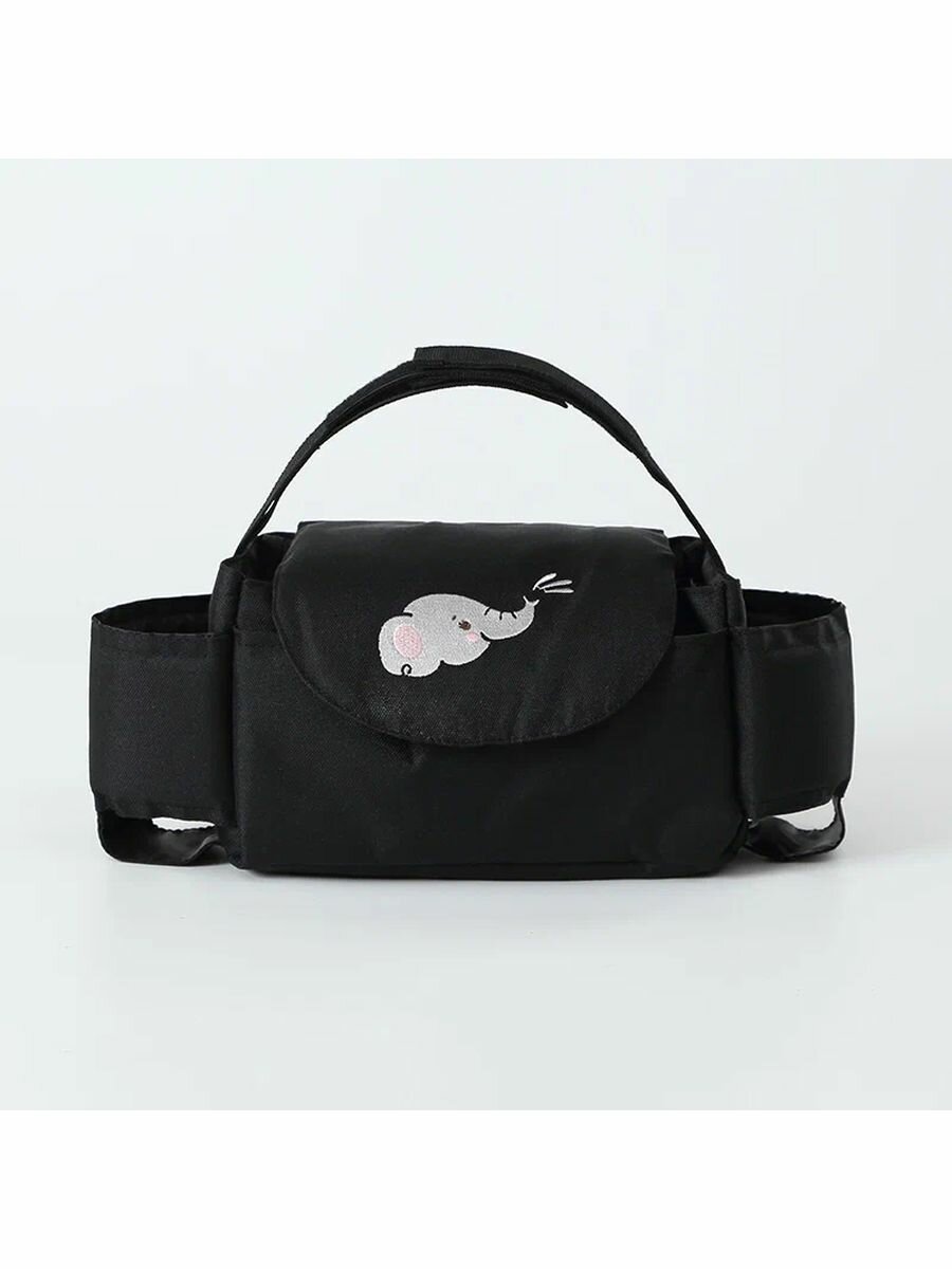Купить Подвесная сумка для хранения на коляске 35х11х15 см, прогулочная детская сумка, черная со слоненком