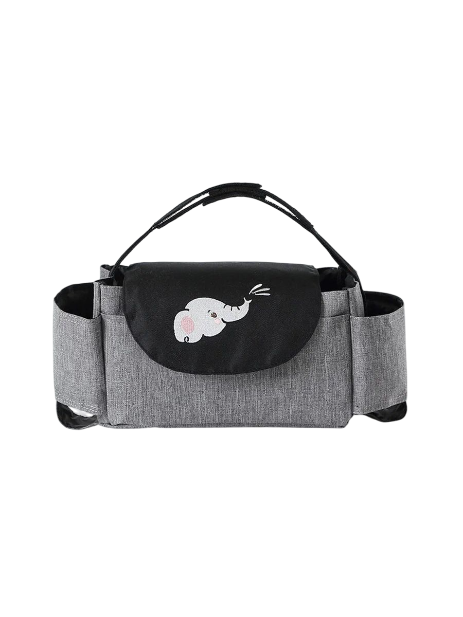 Подвесная сумка для хранения на коляске 35х11х15 см, прогулочная детская сумка, черная со слоненком