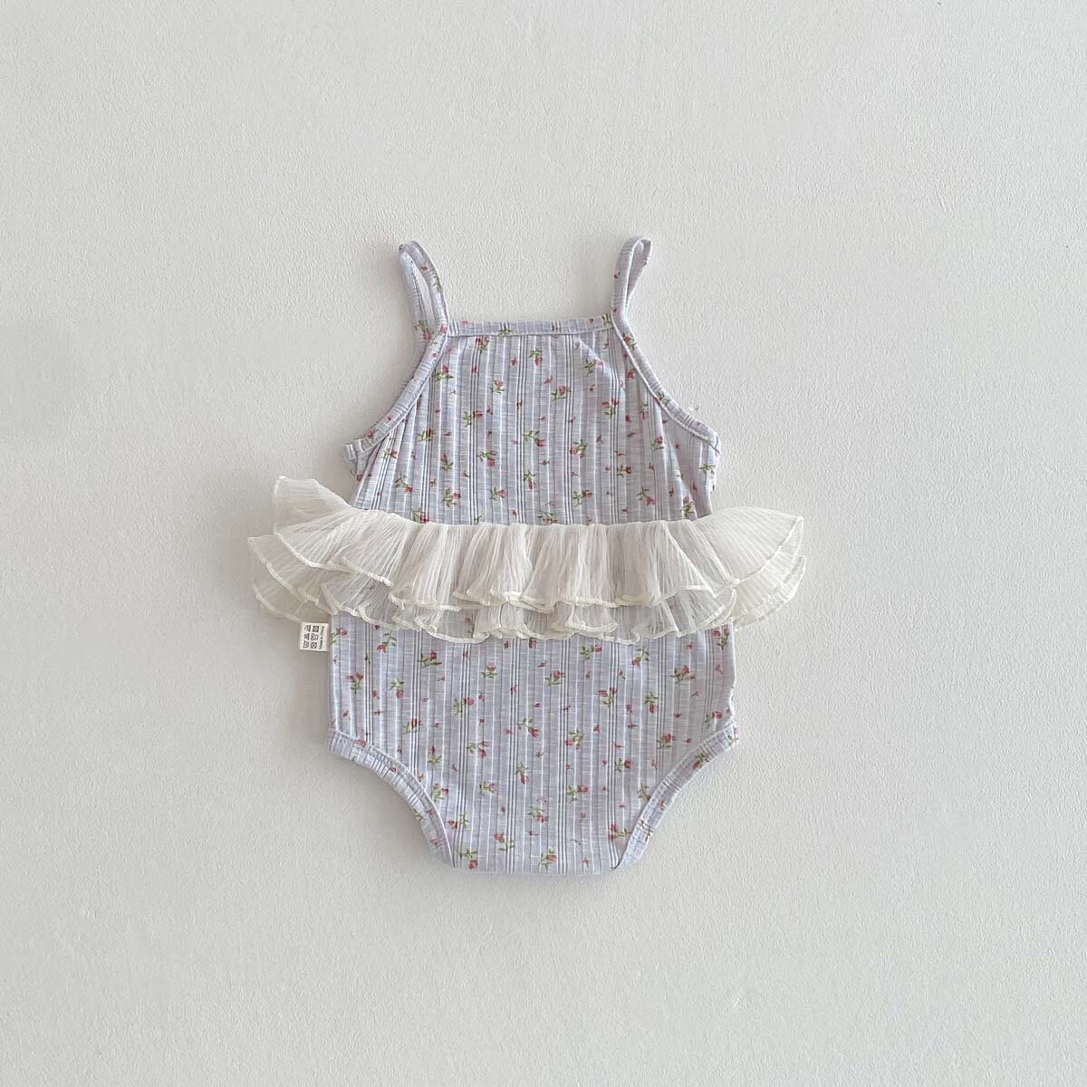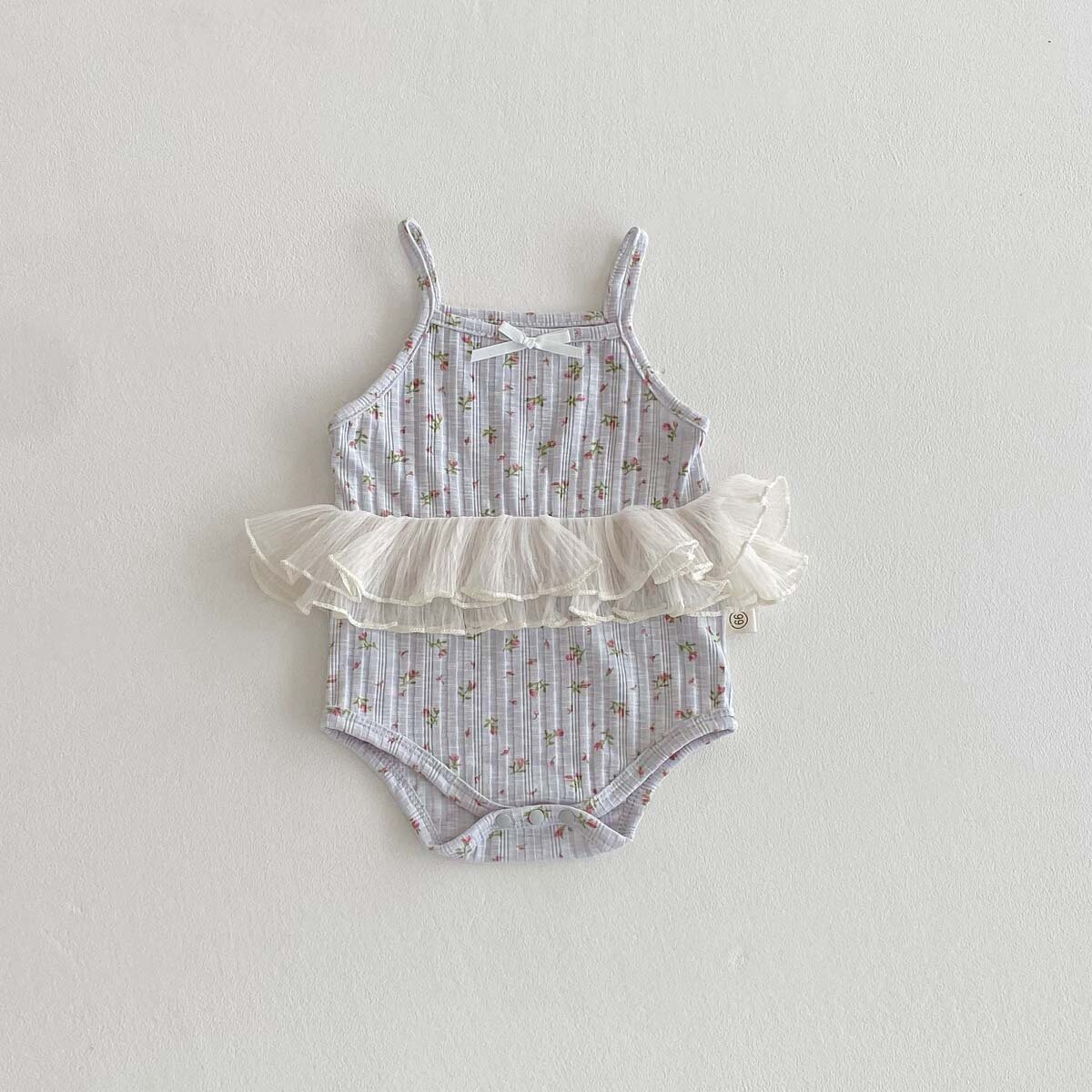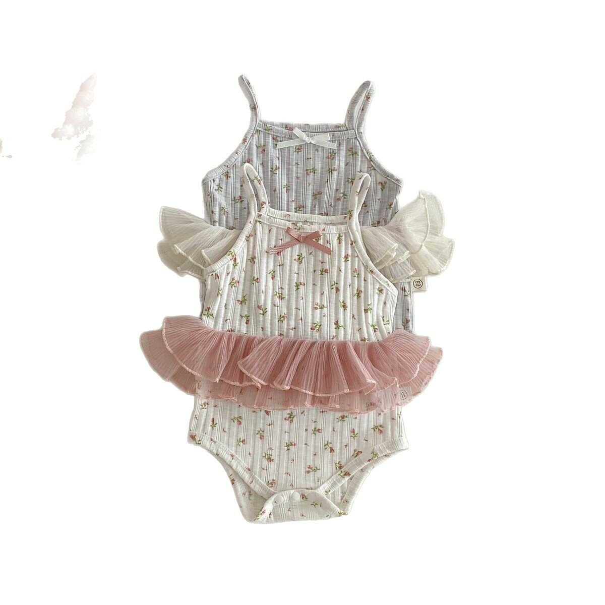 Летняя детская одежда, с цветочным принтом, слинг, кружевная, с бантом