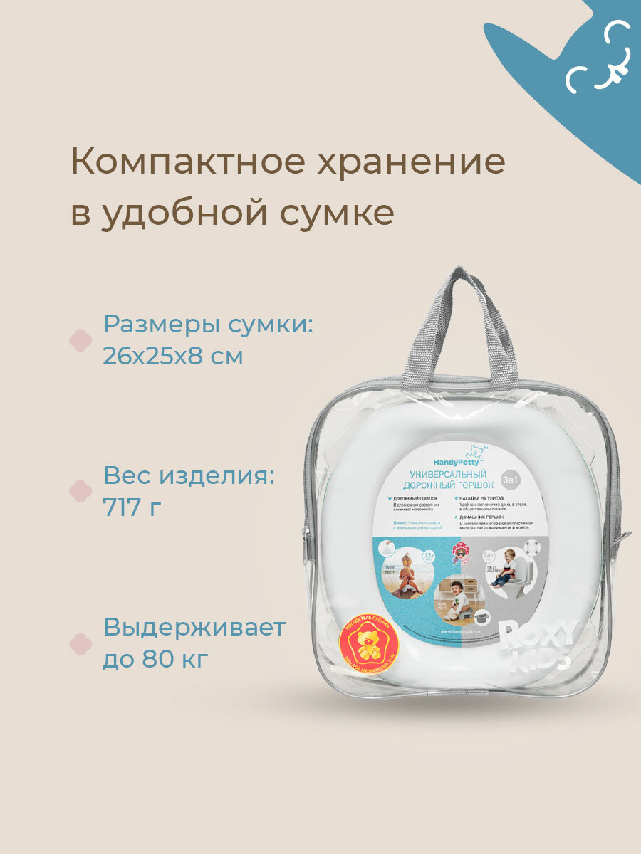 Складной дорожный горшок 3в1 HandyPotty от ROXY KIDS, цвет белый/серый интересное: