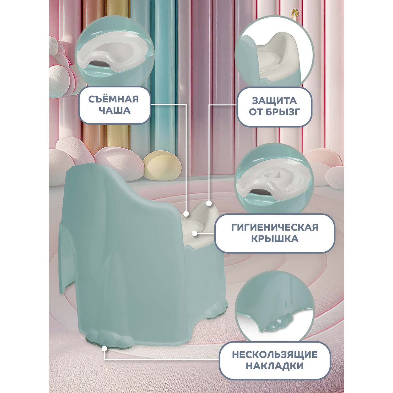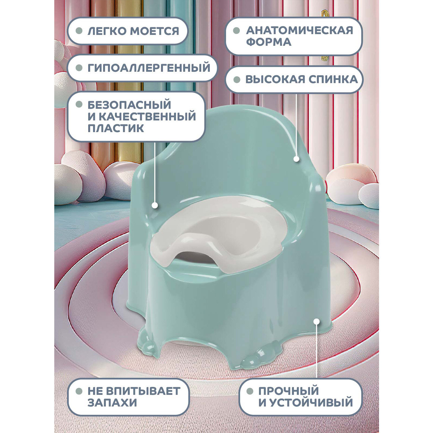 Горшок детский с крышкой, анатомическое сиденье/съемная чаша, устойчивое основание, спинка, JB5300866 интересное: