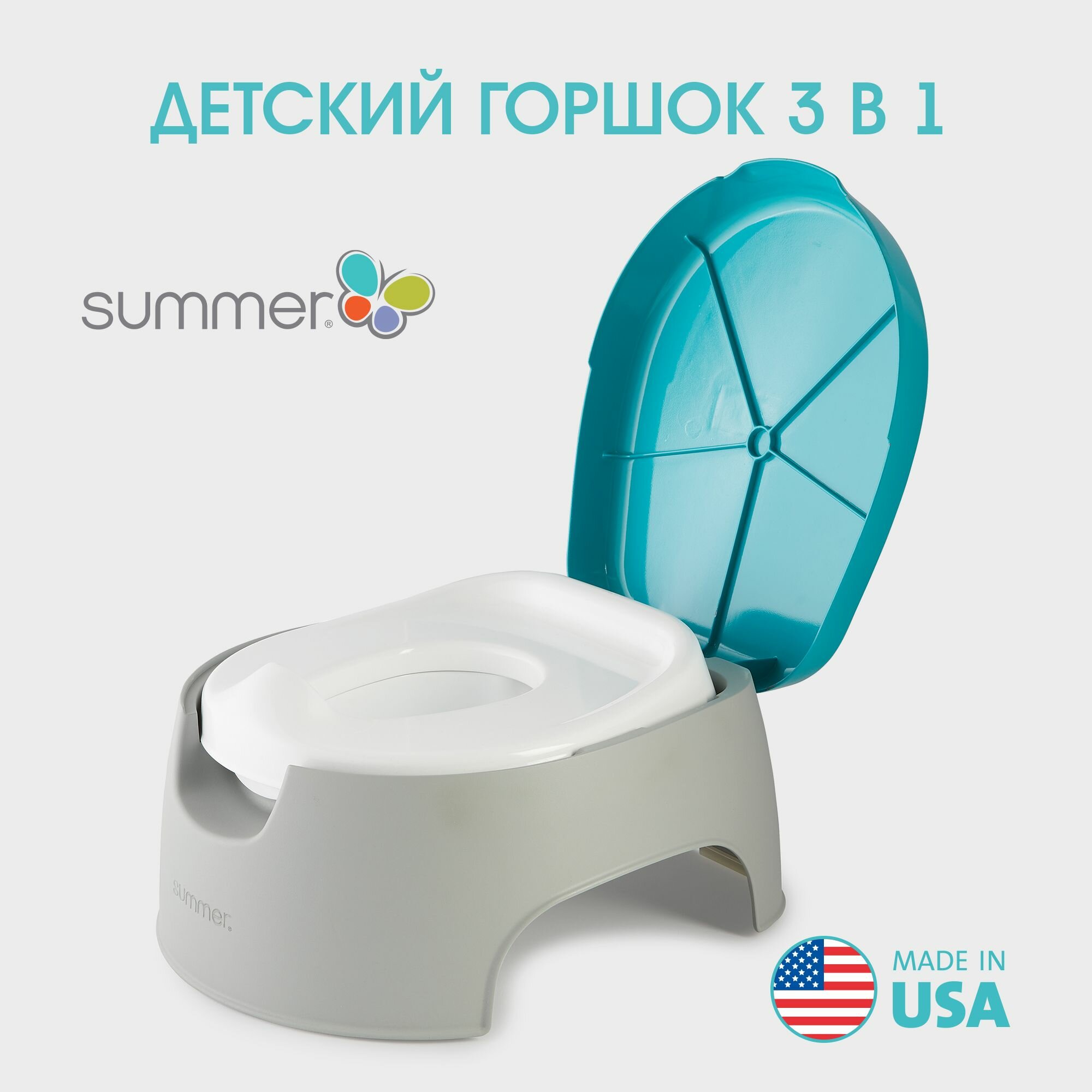 Горшок 3 в 1 Summer Infant Train With Me Potty серо-голубой интересное: