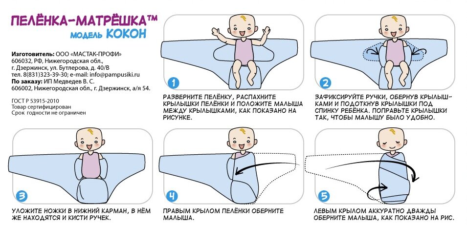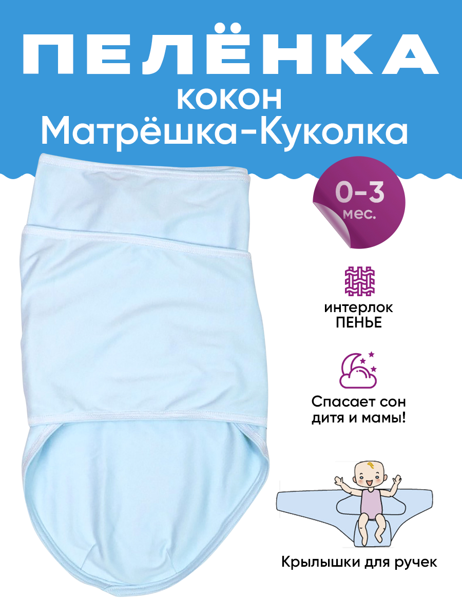 Пеленка-кокон Матрёшка Куколка 0-3 мес. Голубая интересное: