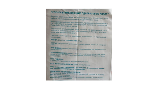 Пеленки KIOSHI 45x60, впитывающие, одноразовые, 3 слоя, 30шт, белые интересное: