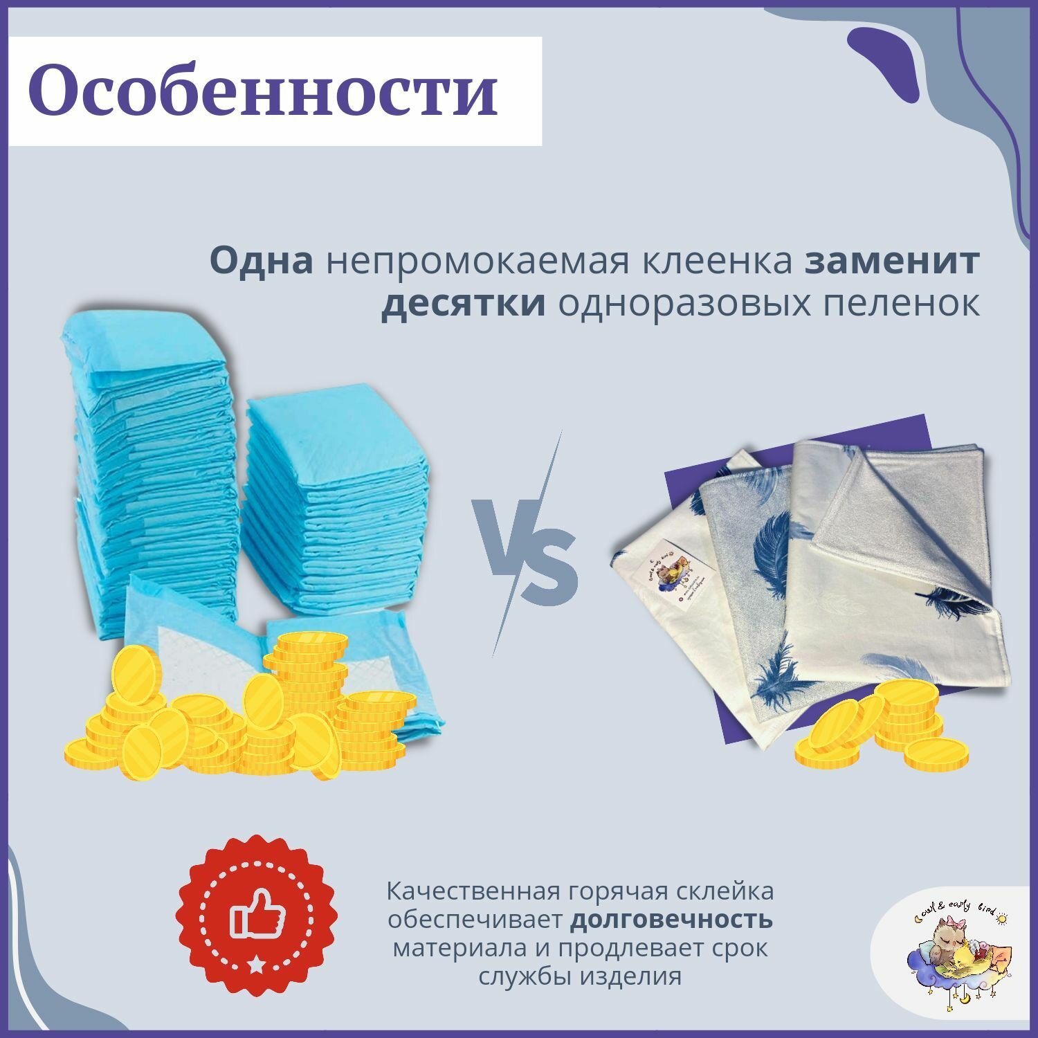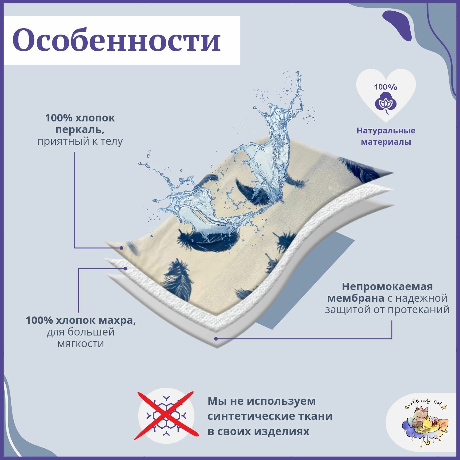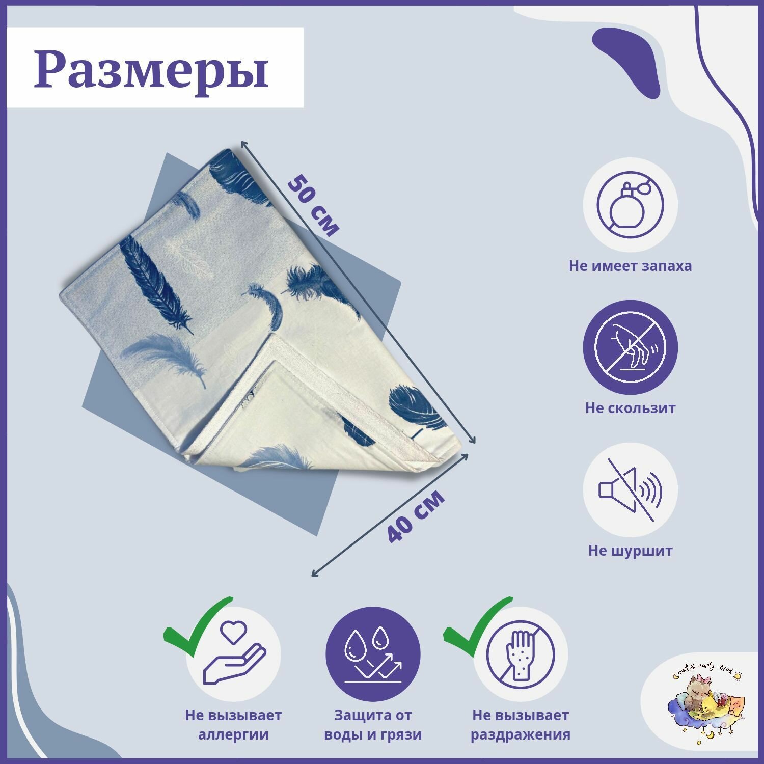 Пеленка текстильная многоразовая непромокаемая хлопок махра клеенка 40 х 50 см Owl&EarlyBird, набор 3 штуки, Перышки интересное: