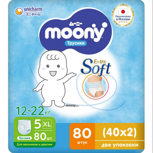Купить Трусики-подгузники Moony Extra Soft Megabox XL (12-22 кг) 80 шт.(40*2 шт)