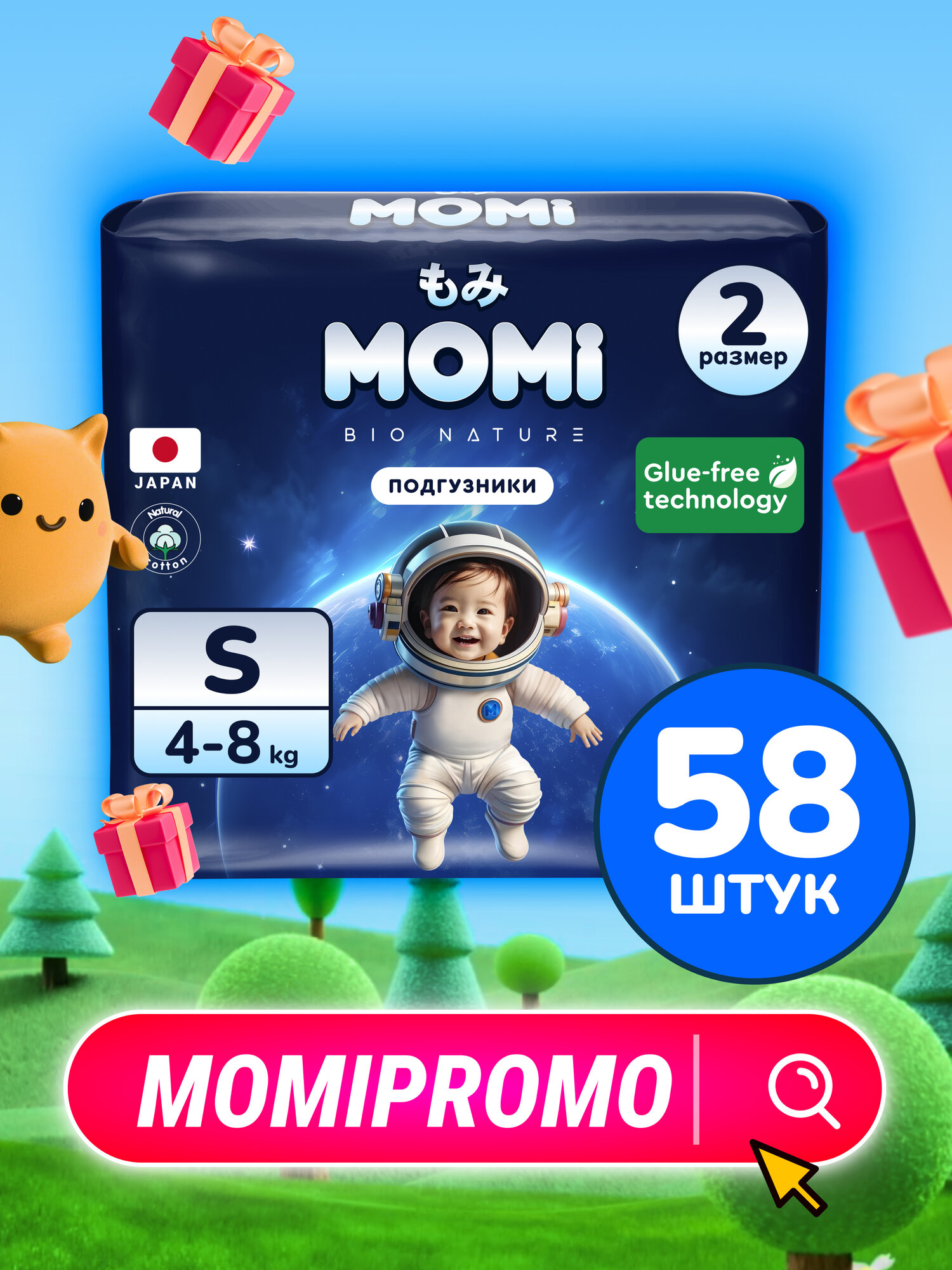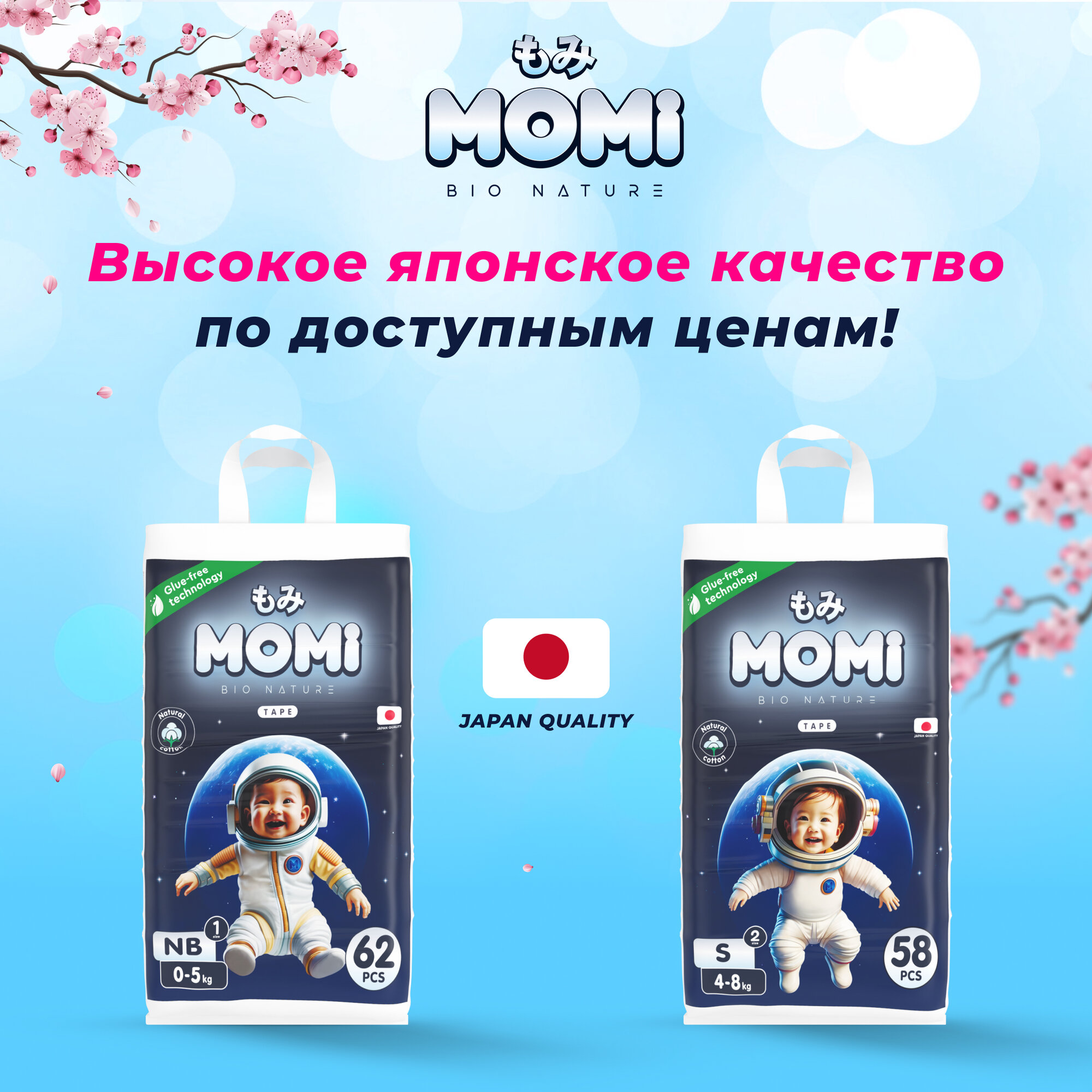 Купить Momi Bio Nature Подгузники для новорожденных 4-8 кг размер 2 S 58 шт.