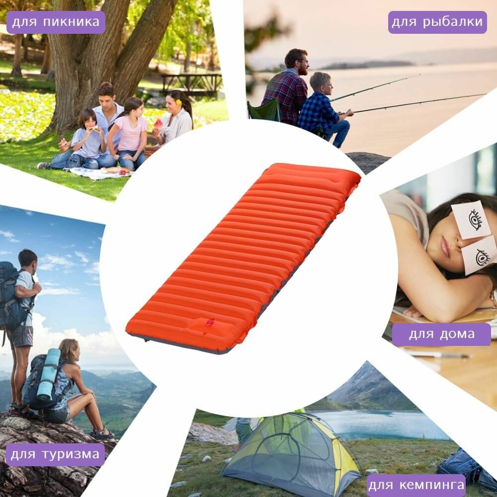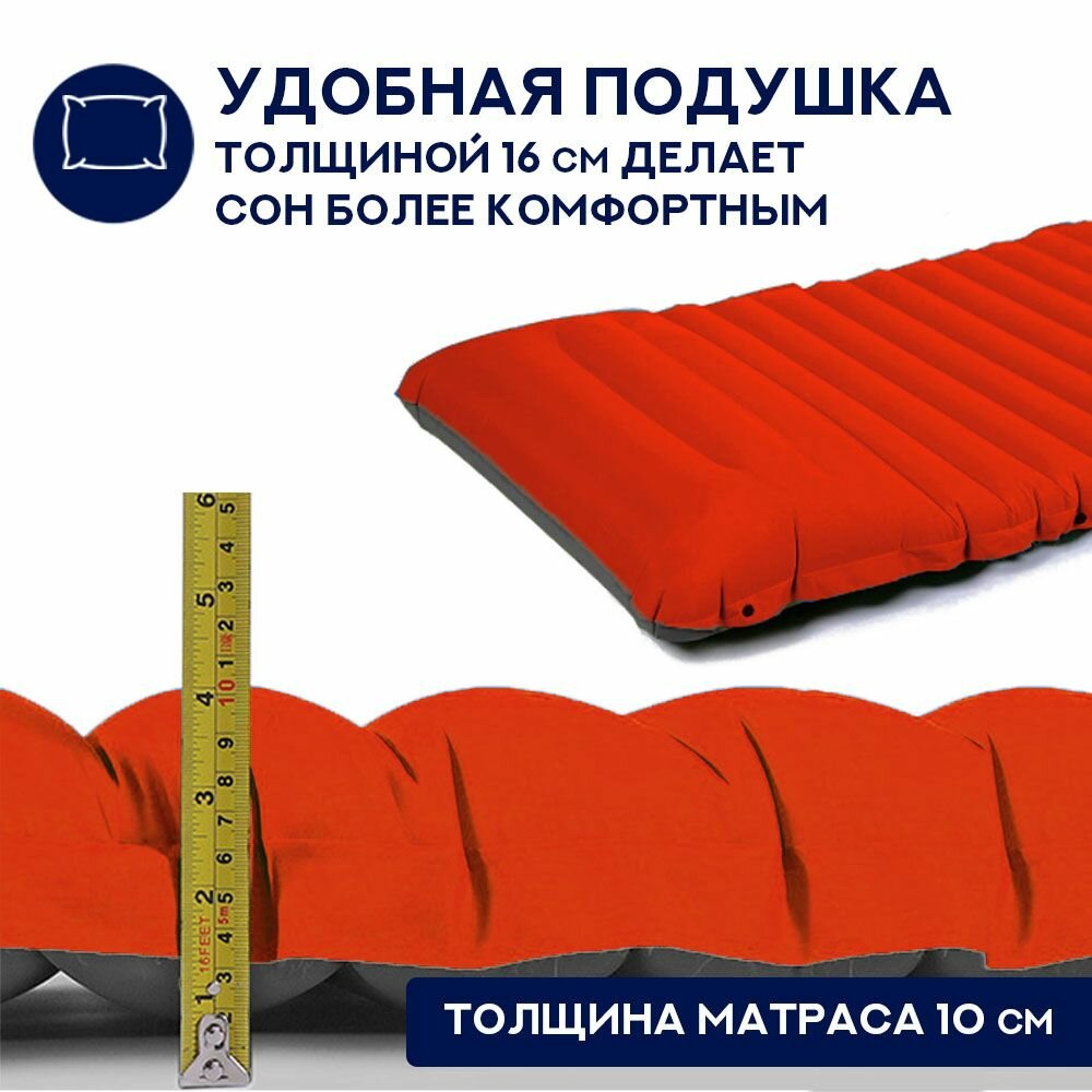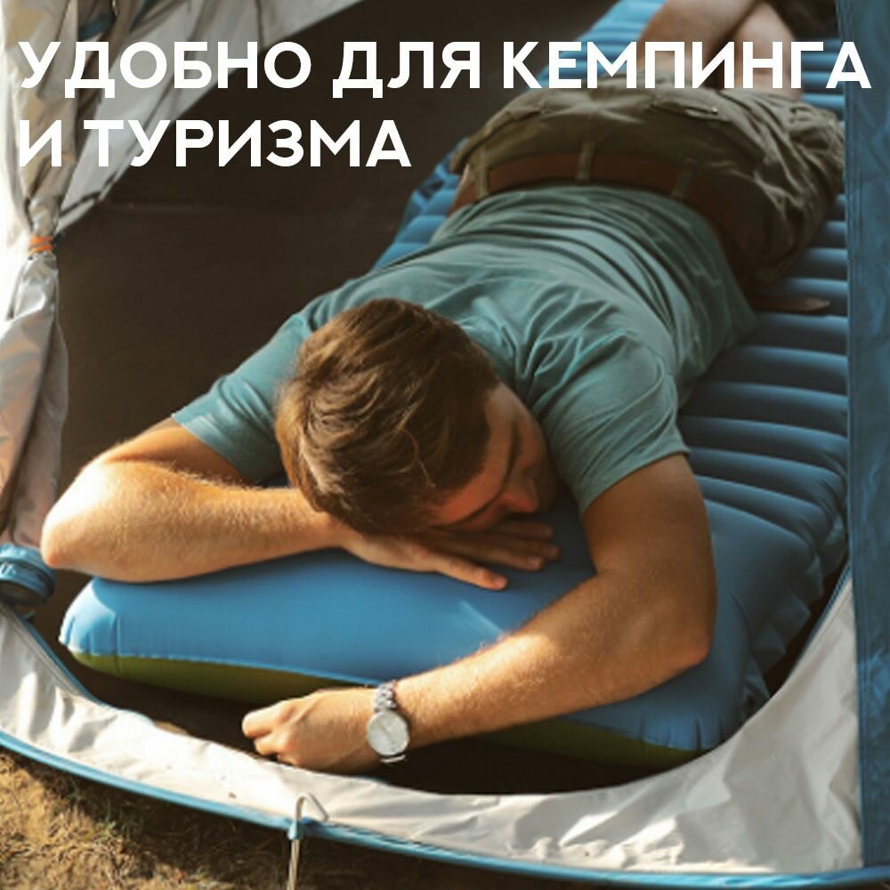 Купить Матрас туристический надувной с встроенным насосом с подушкой, коврик самонадувающийся сверх легкий для палатки туризма кемпинга похода