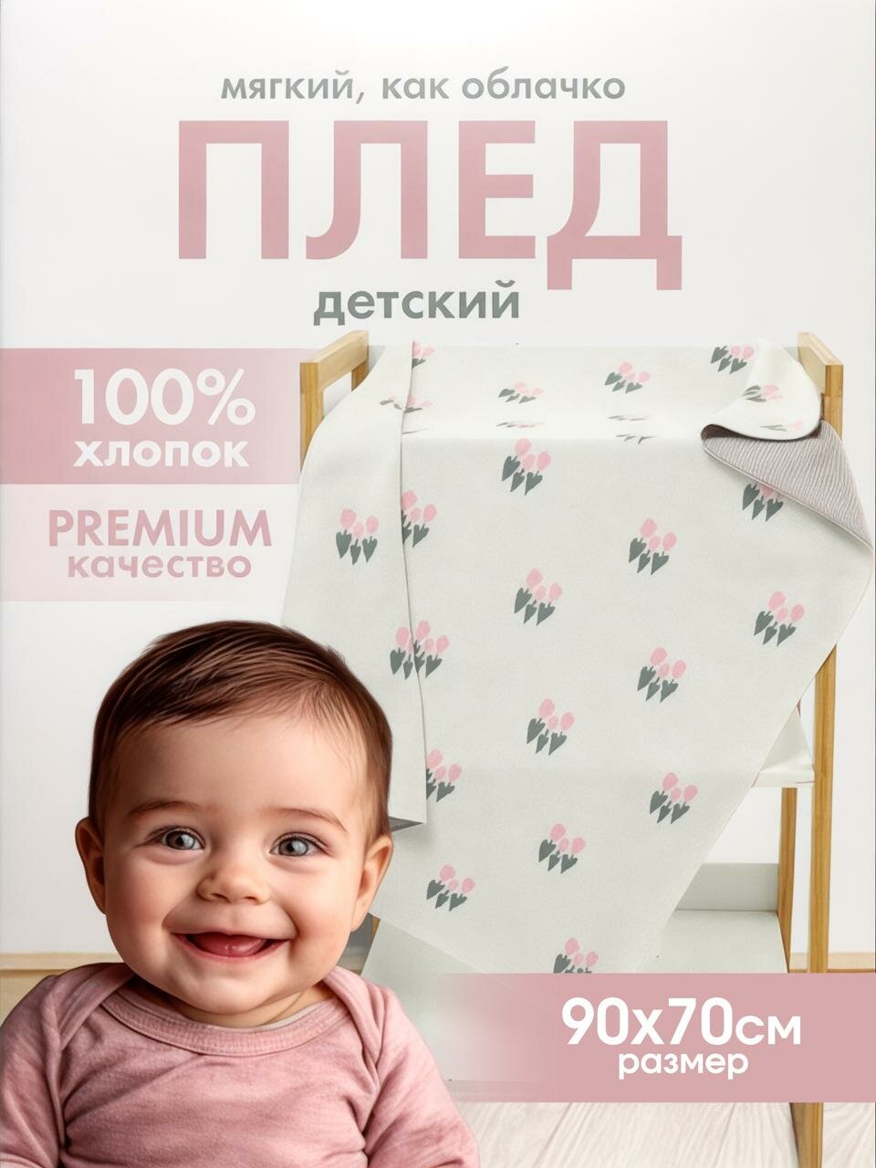 Плед для детей "Цветы" 90 x 70 см, хлопок интересное: