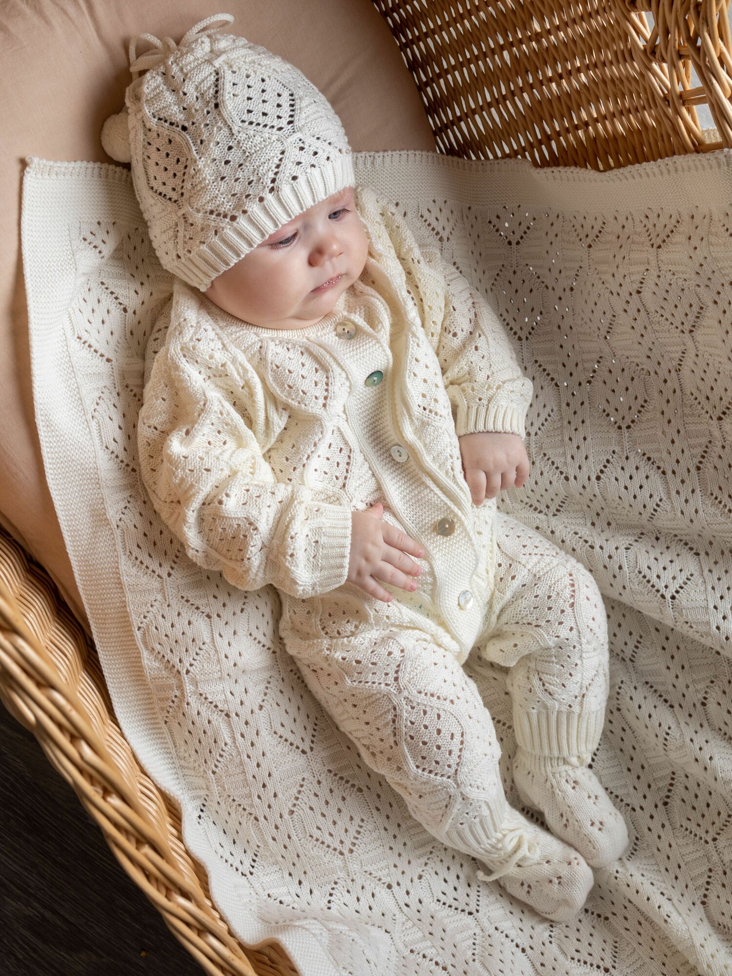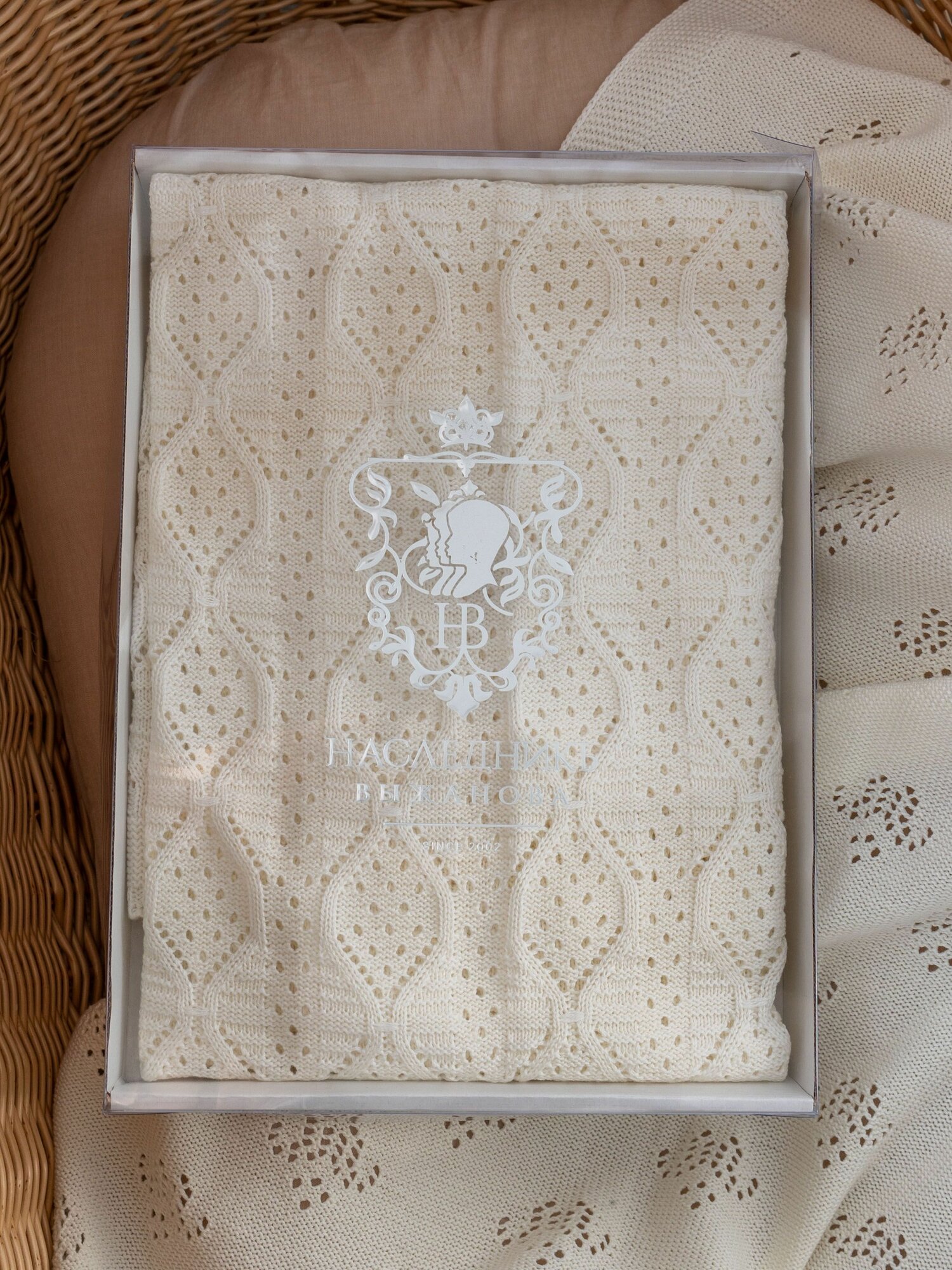Купить Плед на выписку "НаследникЪ Выжанова", хлопок, экрю, 100 см x 90 см