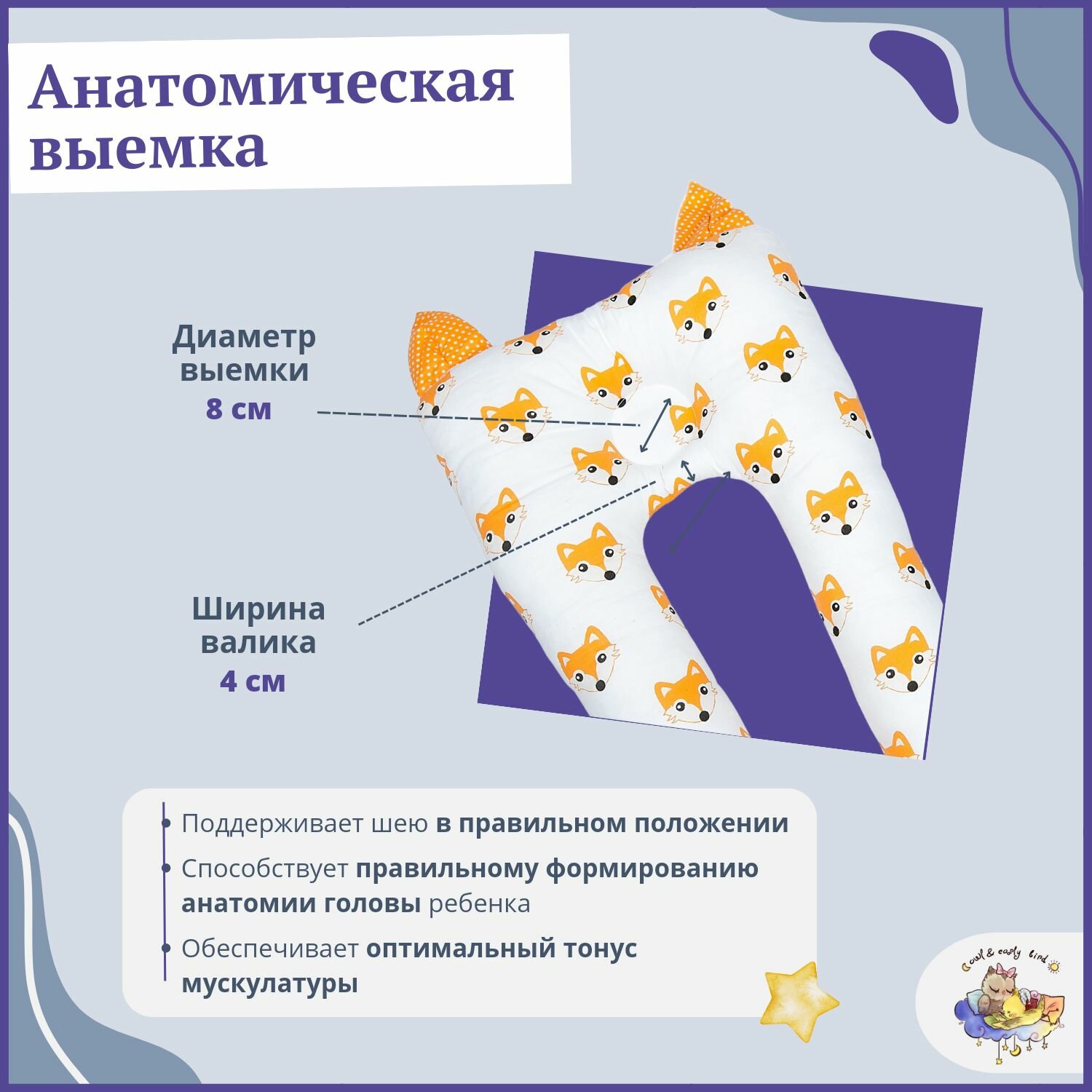 СохранитьКокон для новорожденного малыша гнездышко подушка с чехлом Owl&EarlyBird Лисенок 0+ интересное: