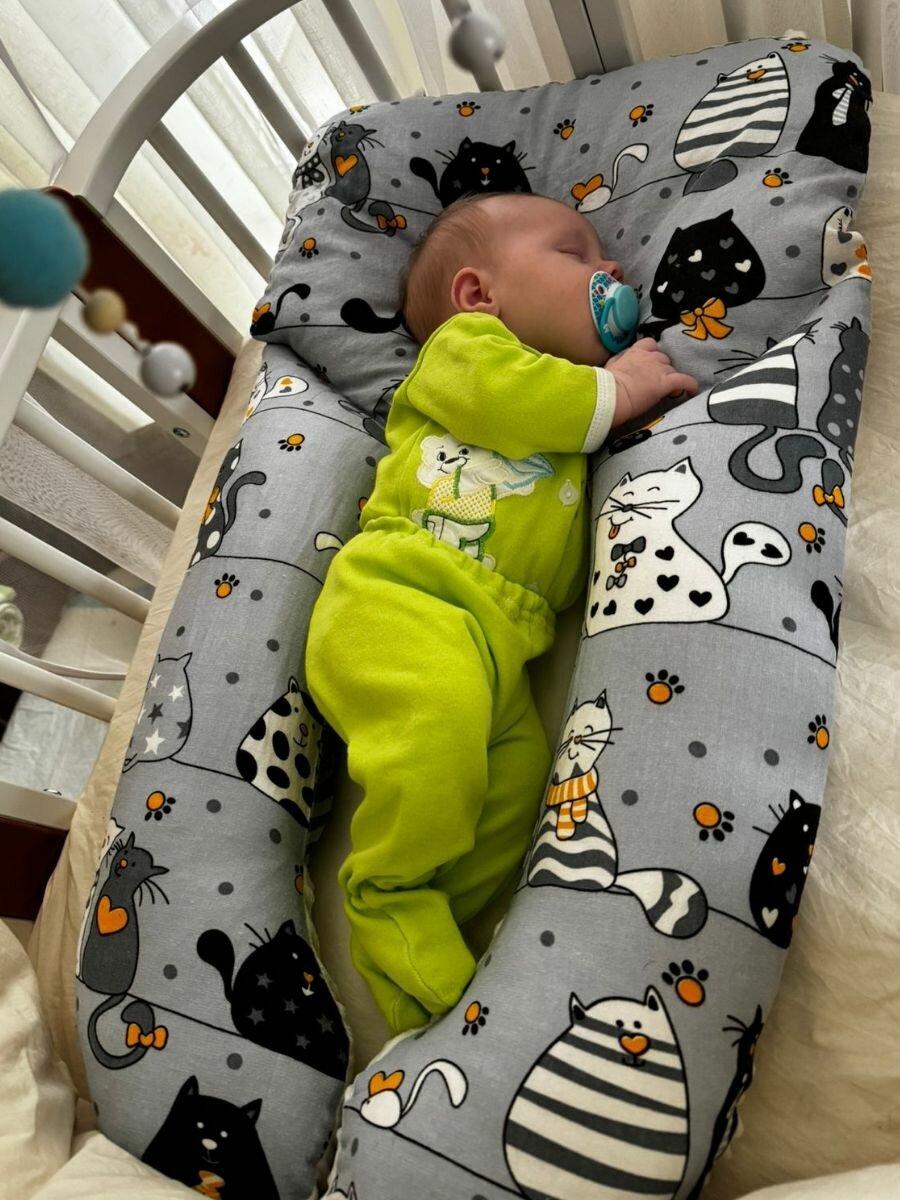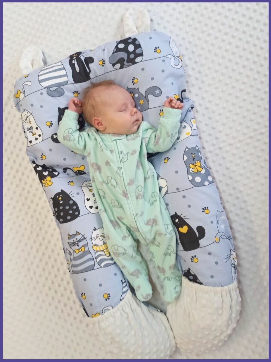 СохранитьКокон для новорожденного малыша гнездышко подушка позиционер с чехлом Owl&EarlyBird Коты серые 0+ интересное: