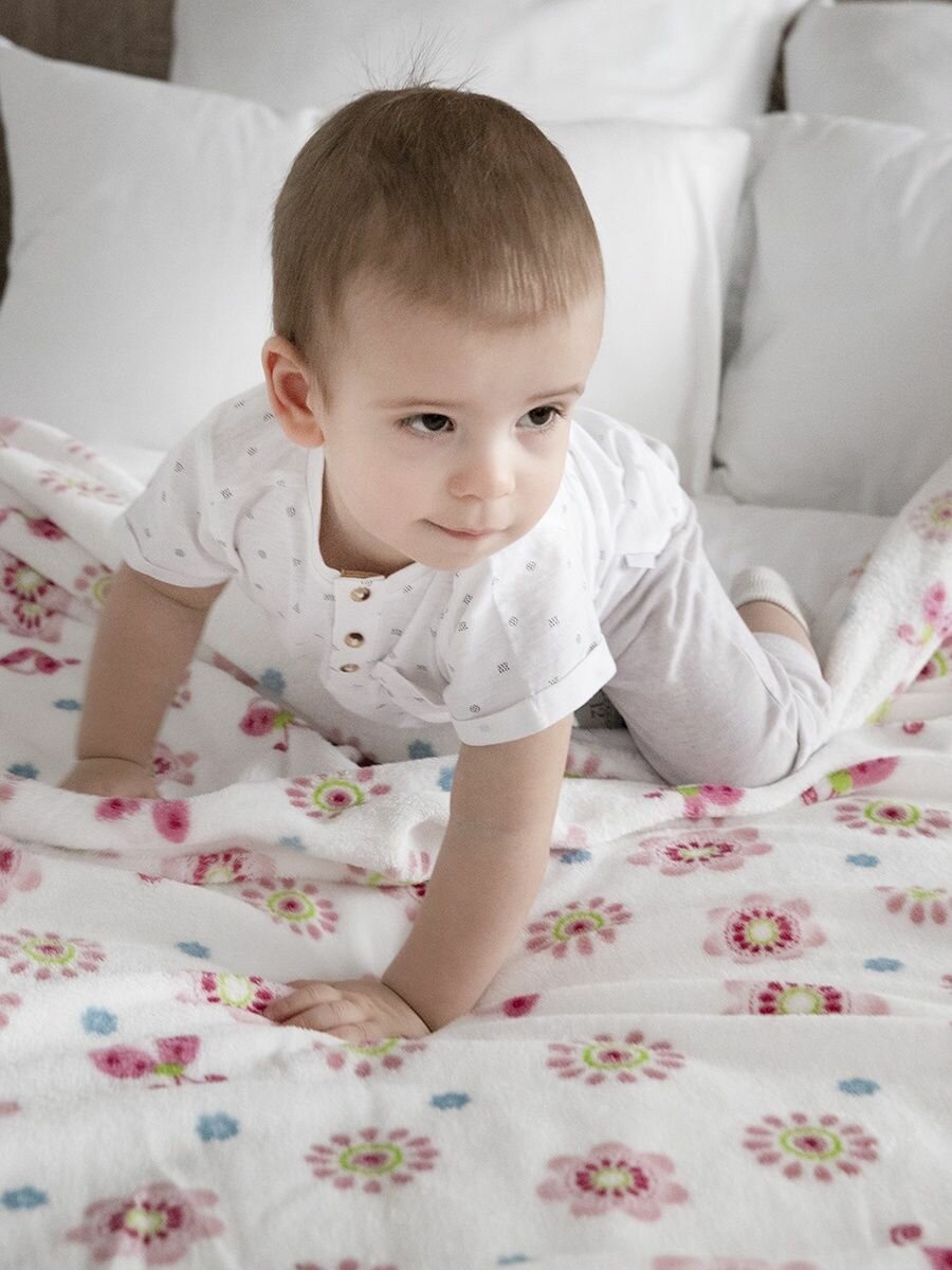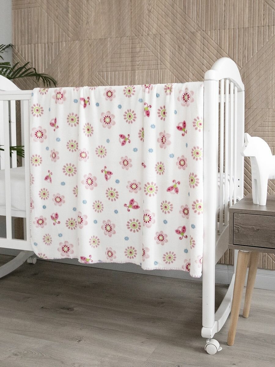 СохранитьПлед для новорожденного 100х118 пушистый детский в кроватку коляску, Tessolo Home, "Цветы", розовый интересное: