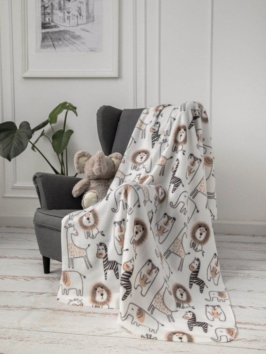 Купить Плед для новорожденного 100х140 флисовый детский Tessolo Home "Африка", серый