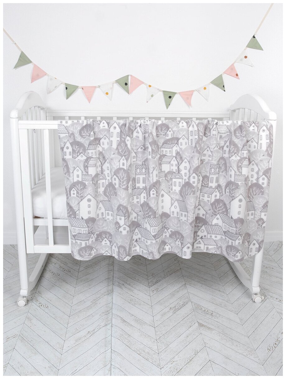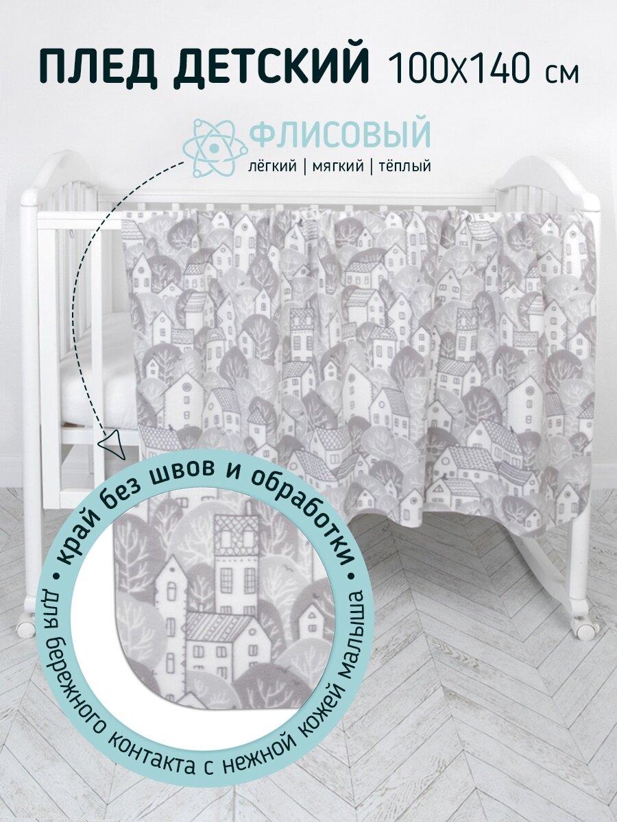 СохранитьПлед флисовый 100х140 детский для новорожденного в кроватку коляску, Tessolo Home, Домики, серый интересное: