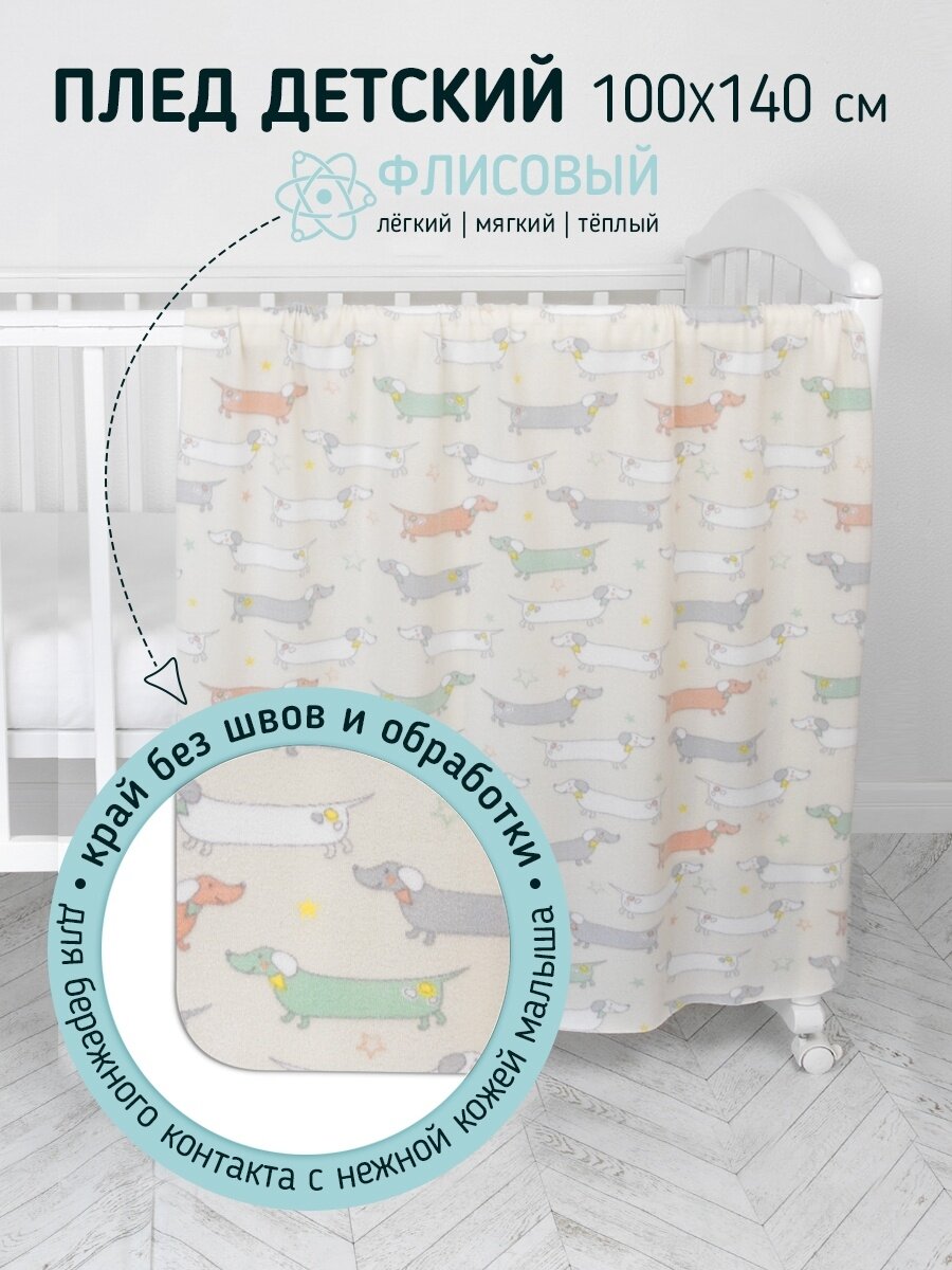 Купить Плед для новорожденных флисовый мягкий 100х140 см. "Таксы" Baby Nice