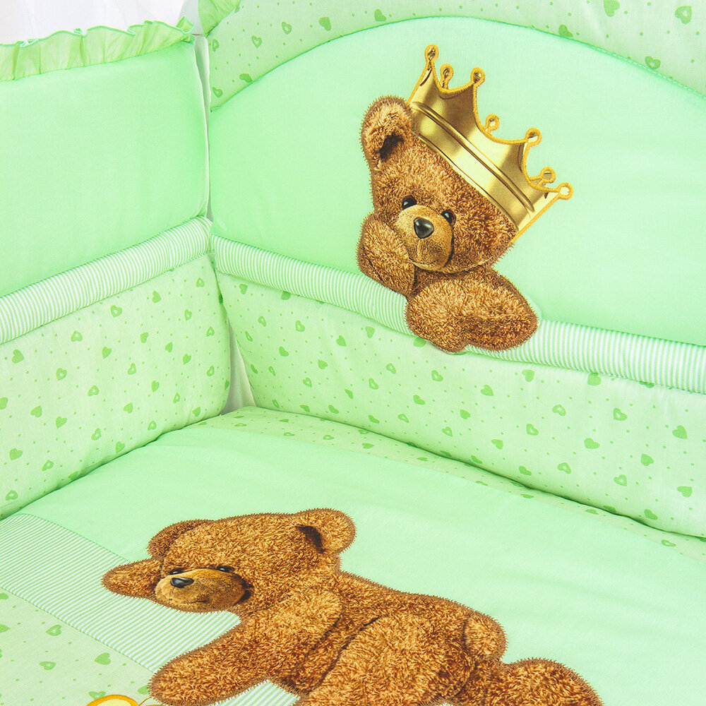 Комплект бортики в кроватку новорожденного для девочки и для мальчика "Мишка-Царь" (1084 зеленый) интересное:
