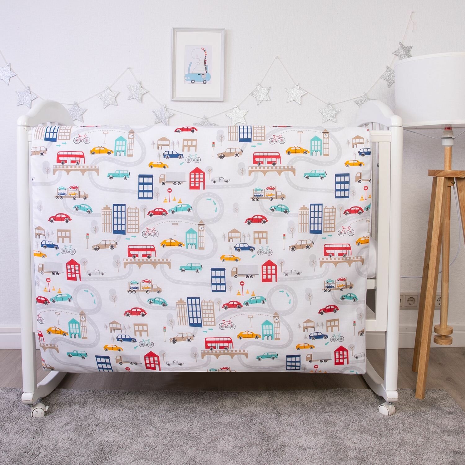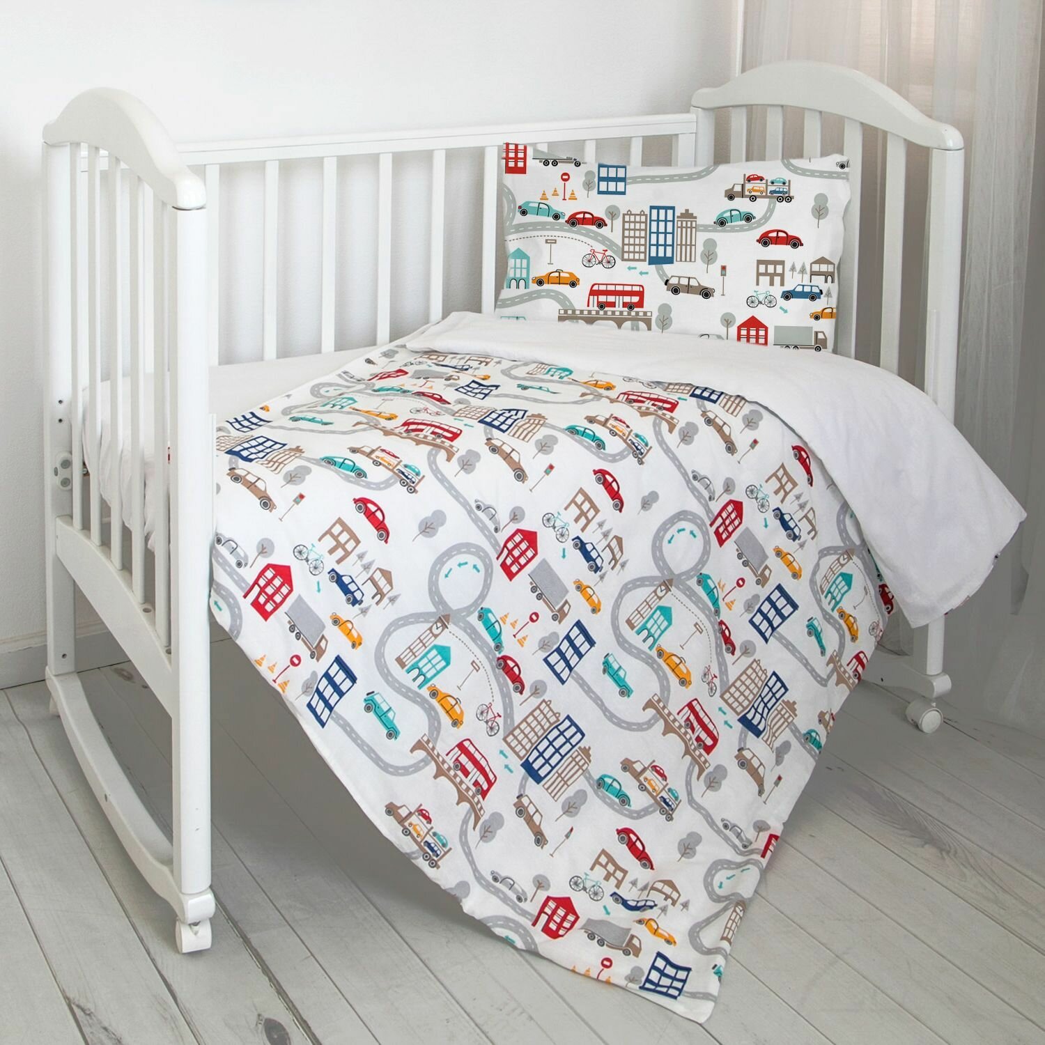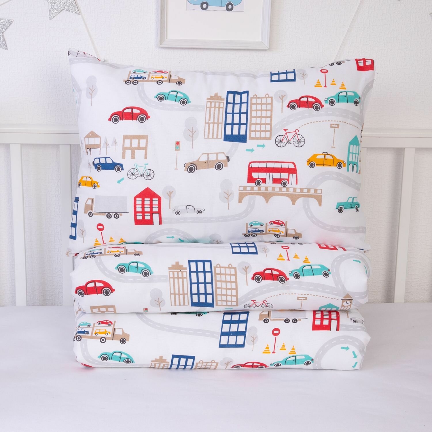 СохранитьПостельное белье детское в кроватку для новорожденного бязь хлопок 100%. Простыня на резинке 60х120 см "Машинки" интересное: