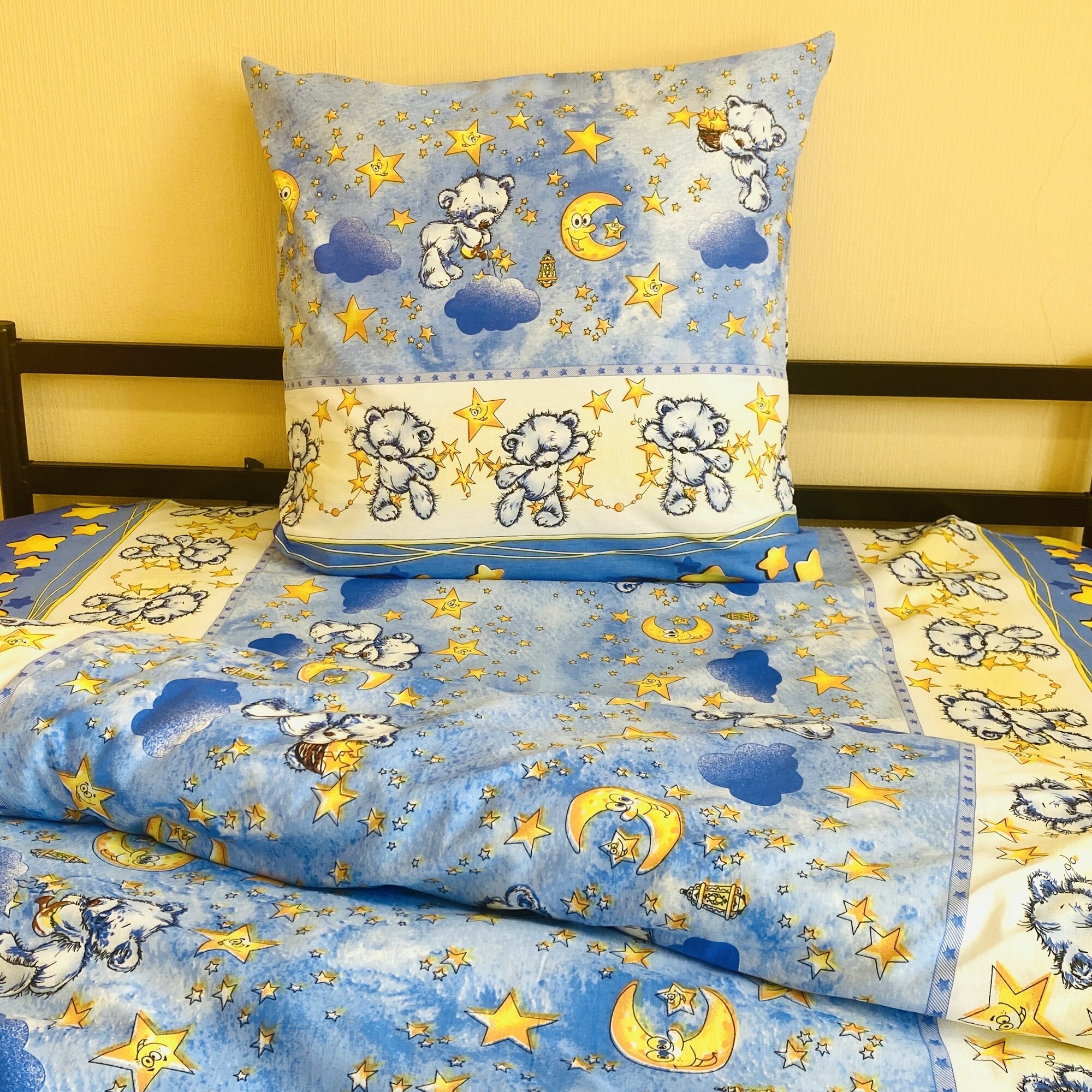 Купить Наволочка 70х70 1 шт Бязь Хлопок Мишки и звезды на голубом фоне