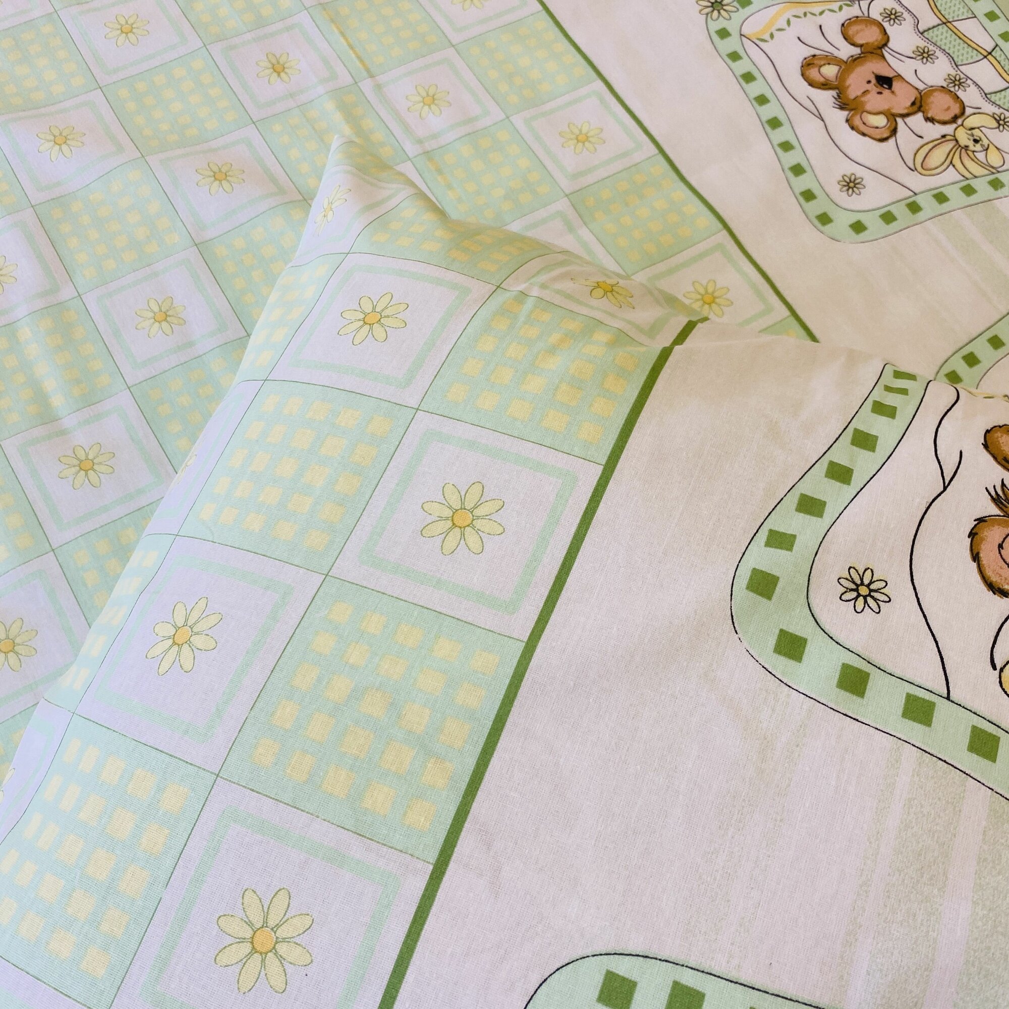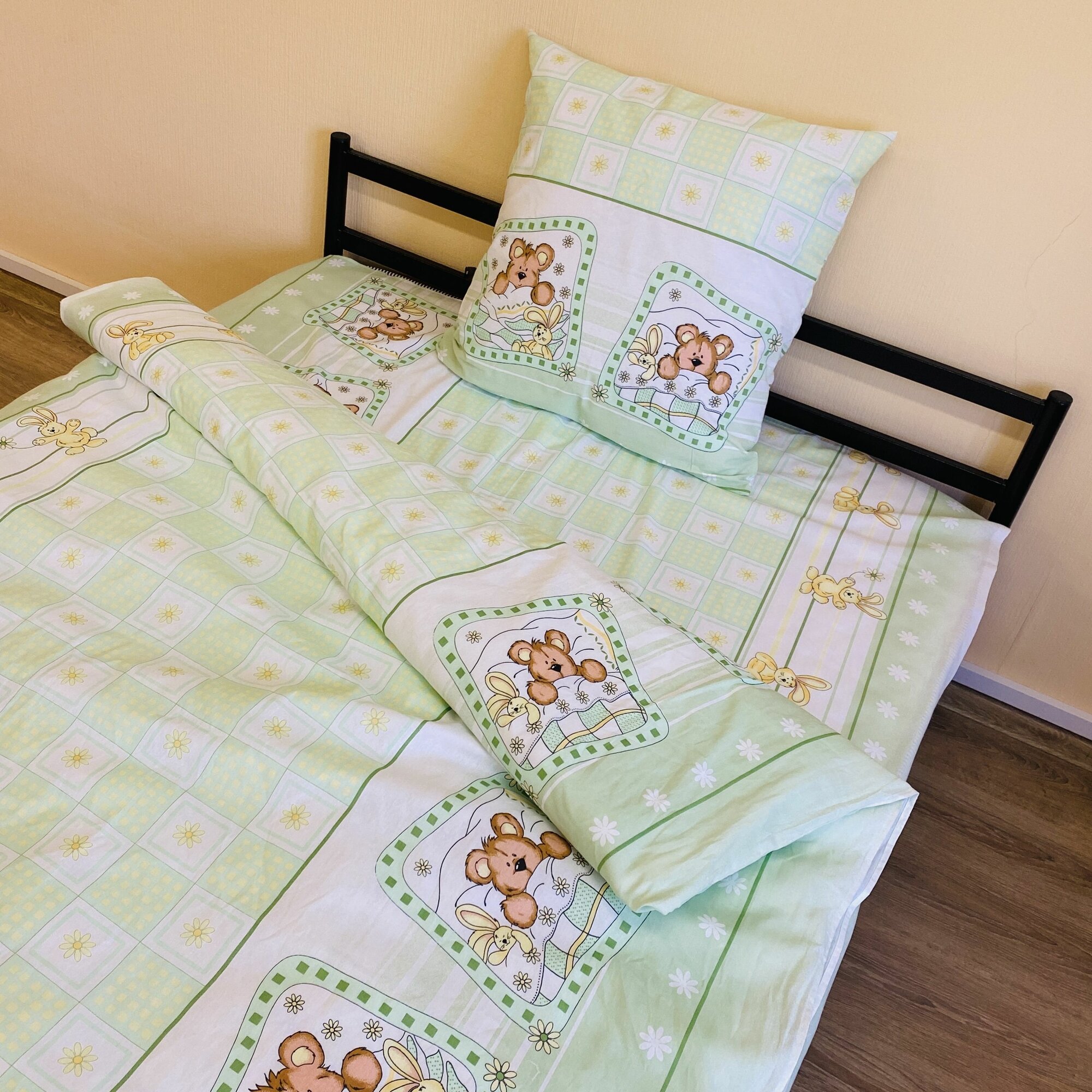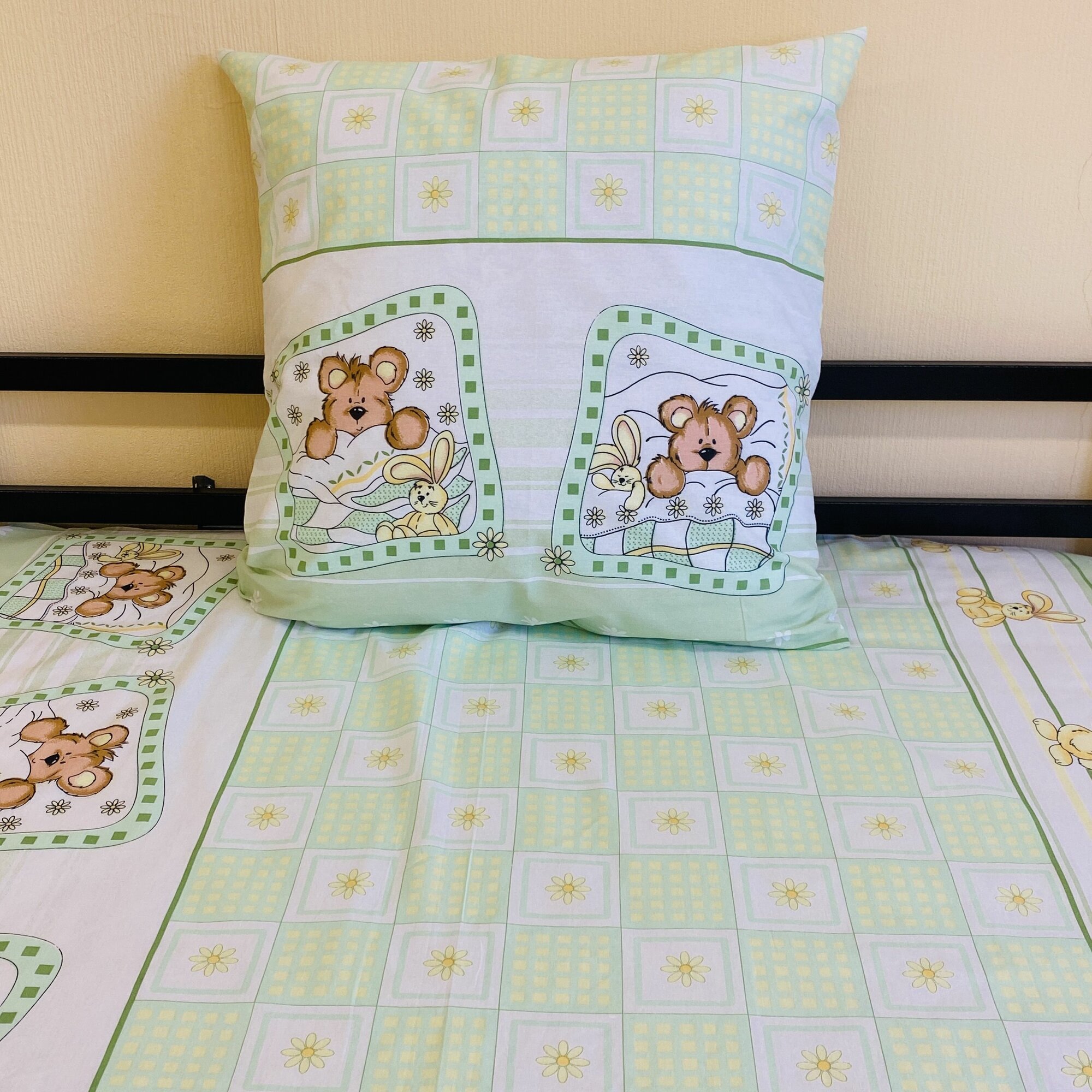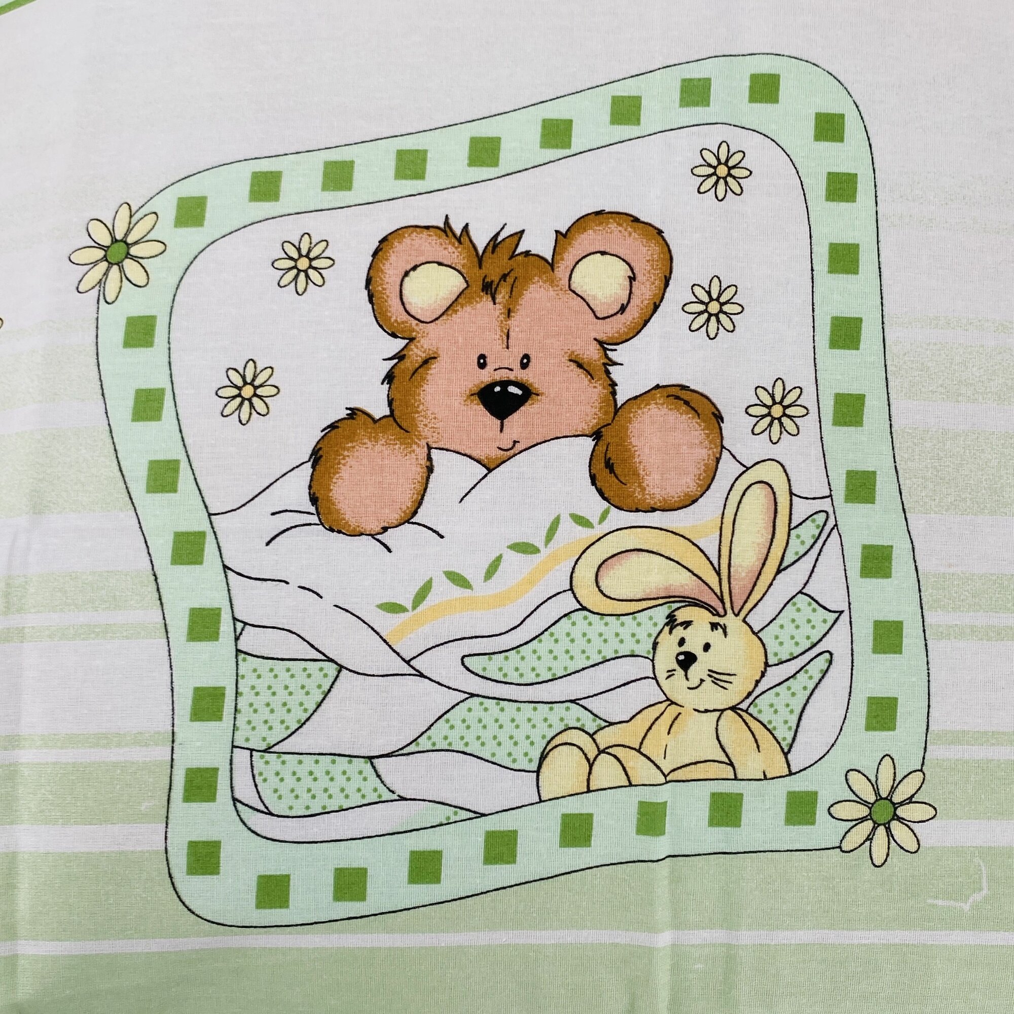 СохранитьНаволочка 70х70 1 шт Бязь Хлопок Мишка и заяц на зеленом фоне интересное: