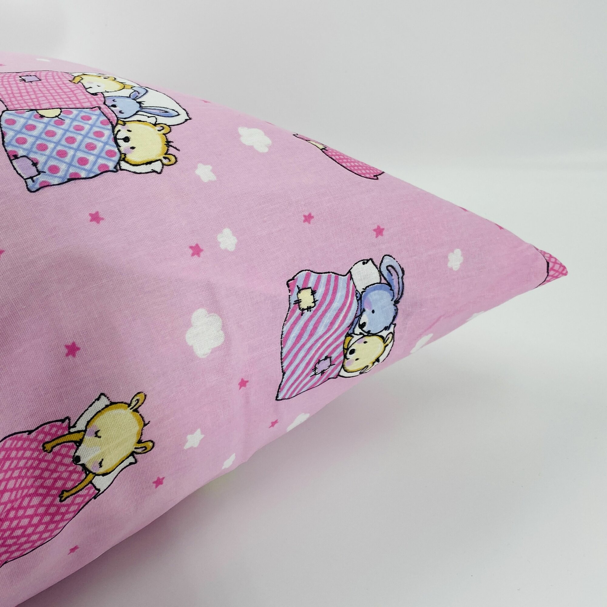 Наволочка 70х70 хлопок 1 штука Зайчик и мишка на розовом фоне